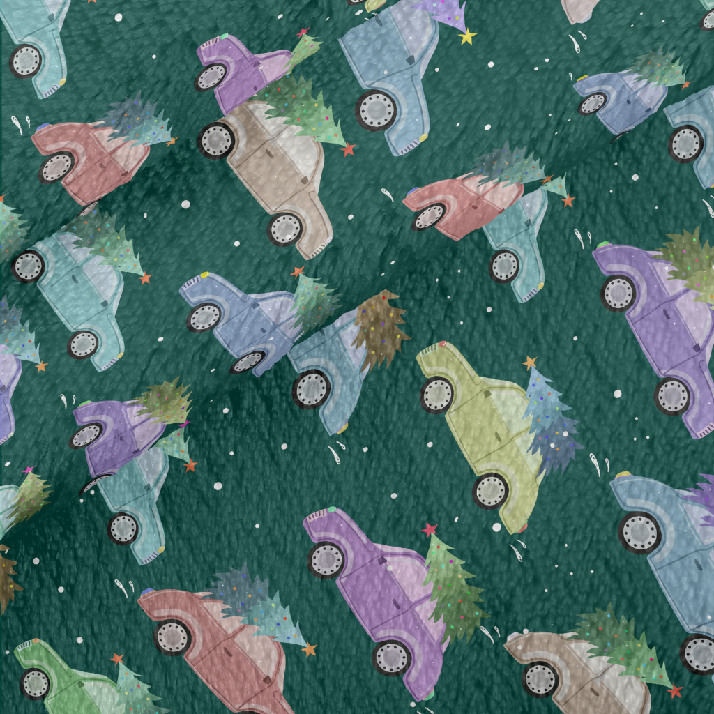 彩色汽車與聖誕樹法蘭絨(幅寬150公分)