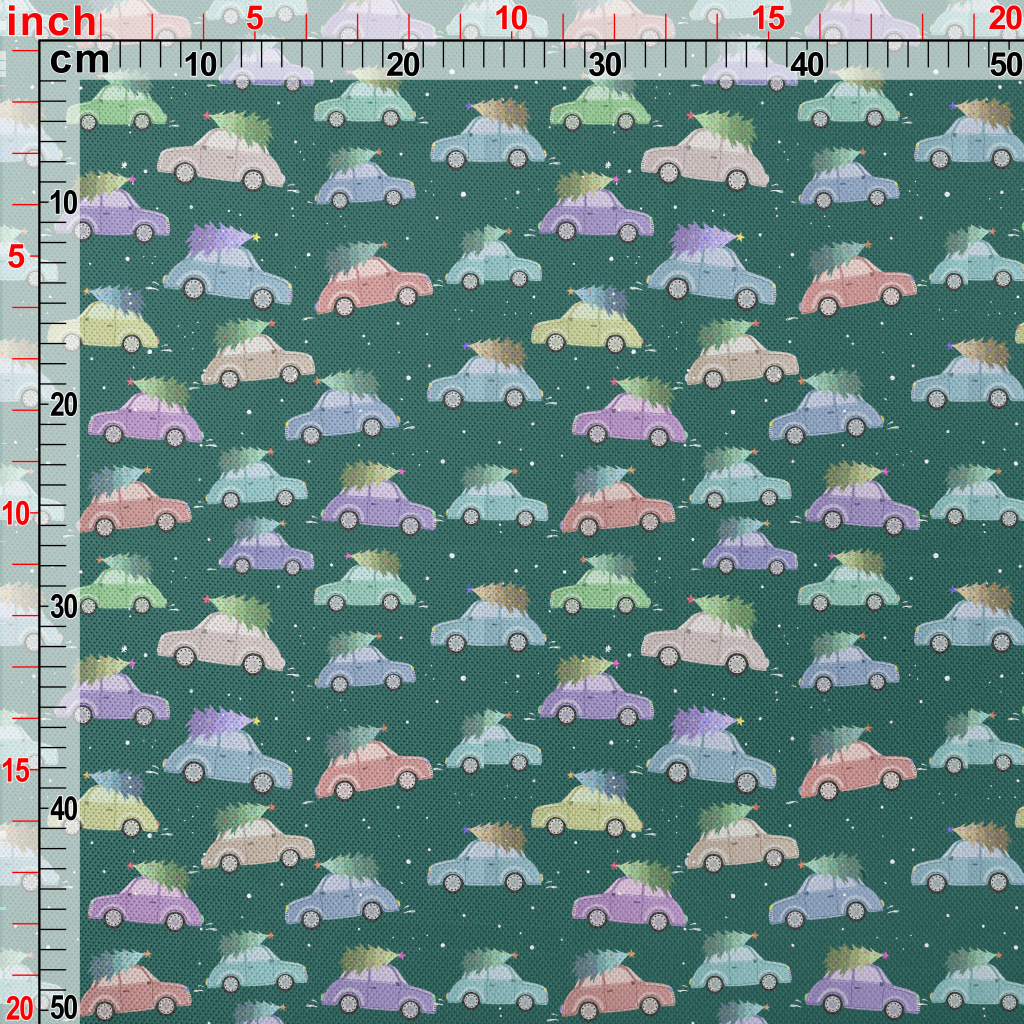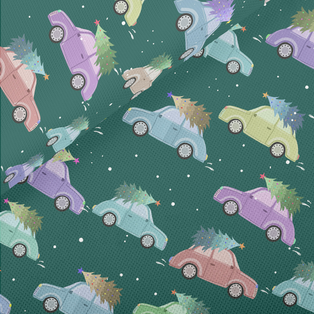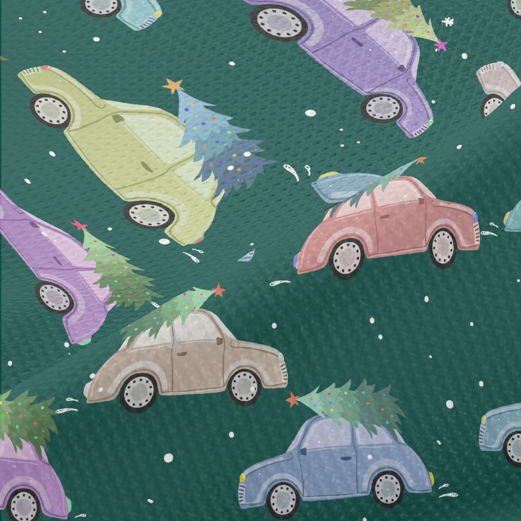 彩色汽車與聖誕樹高爾布(幅寬180公分)