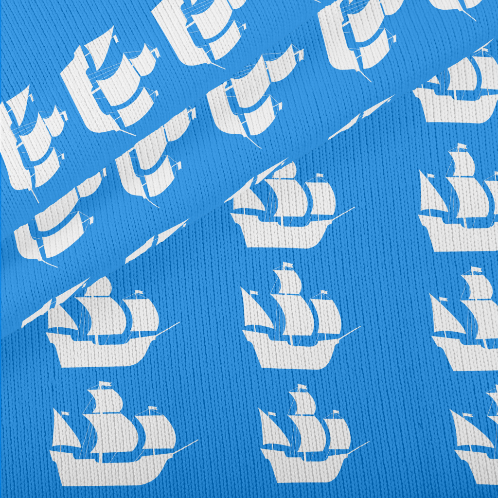白色海盜船剪影仿毛衣布(幅寬150公分)
