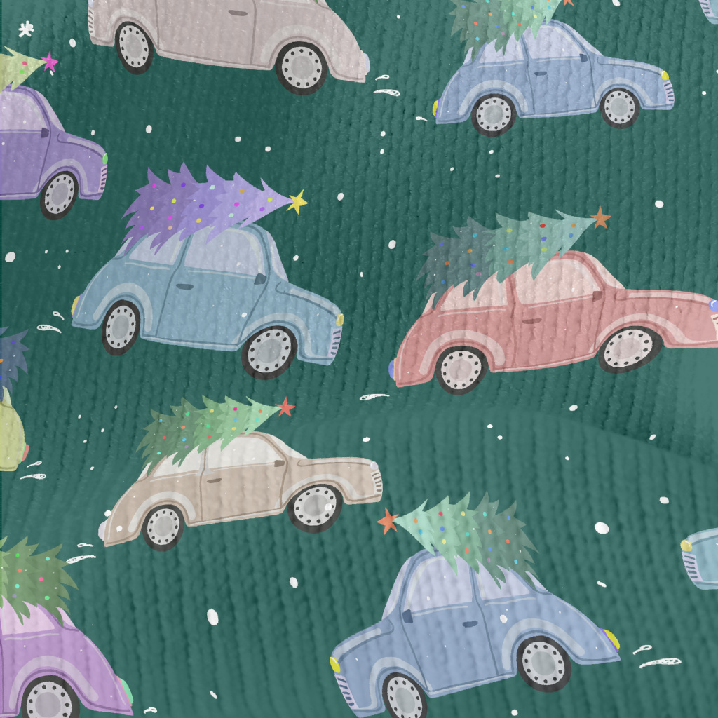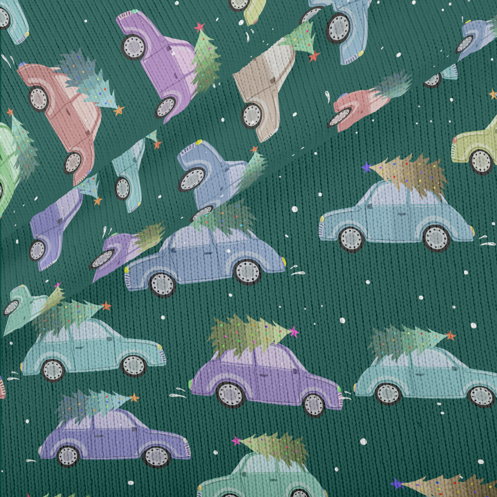 彩色汽車與聖誕樹仿毛衣布(幅寬150公分)