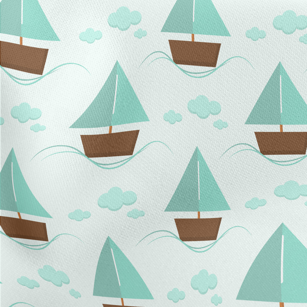 薄荷綠可愛帆船薄棉布(幅寬150公分)