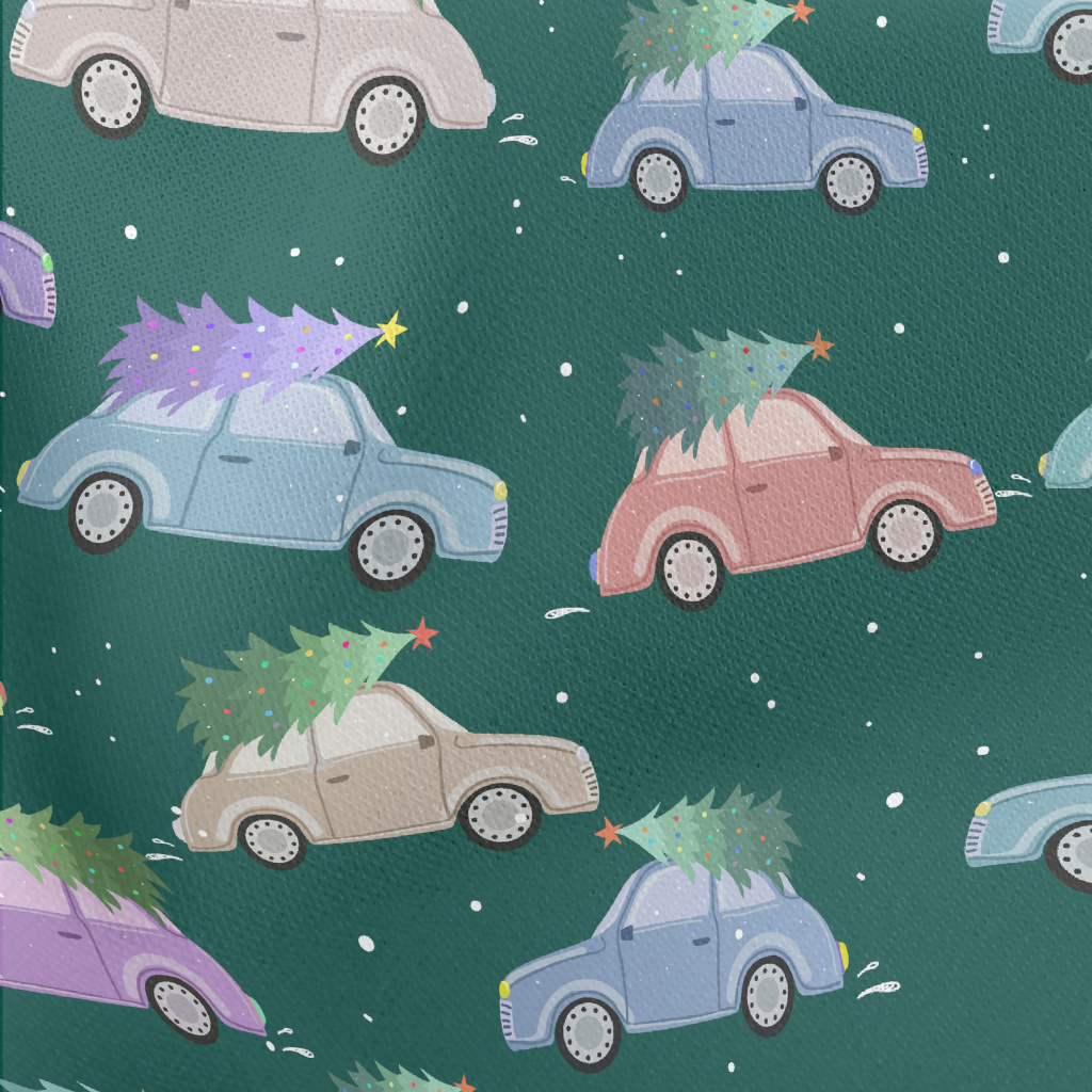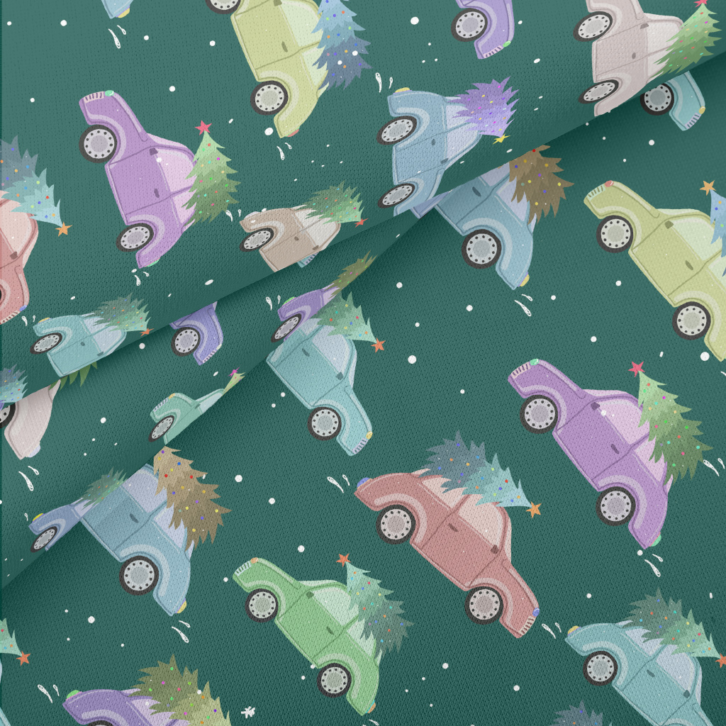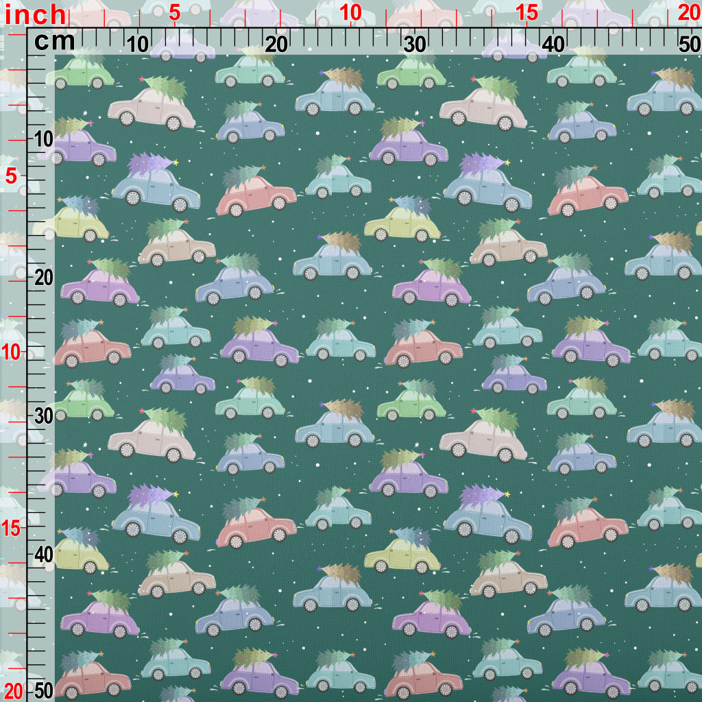 彩色汽車與聖誕樹薄棉布(幅寬150公分)