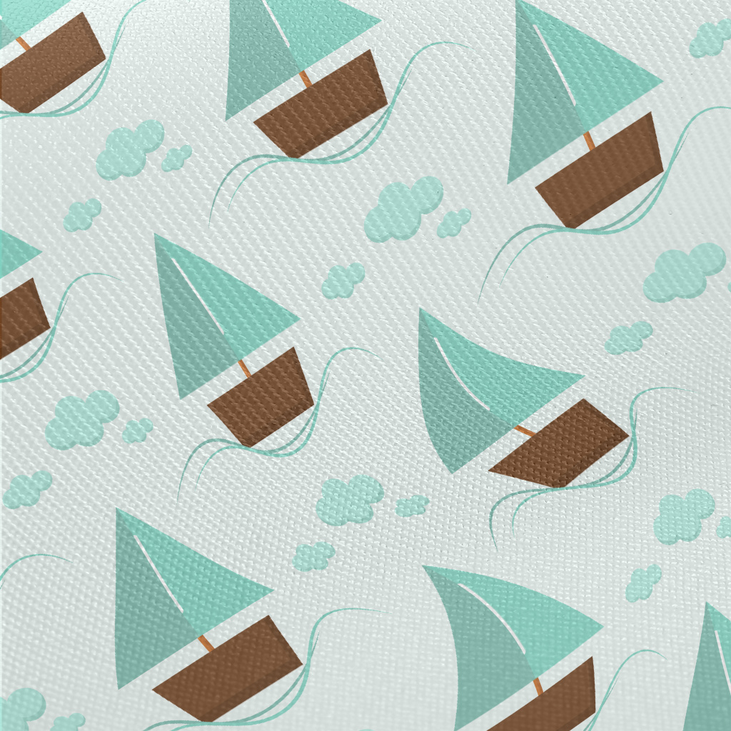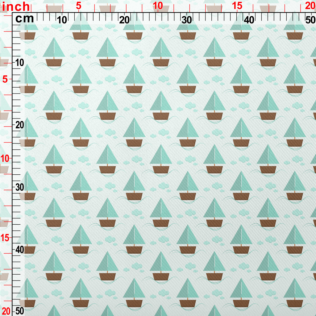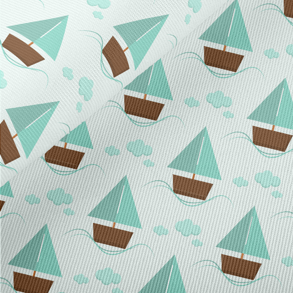 薄荷綠可愛帆船厚棉布(幅寬150公分)
