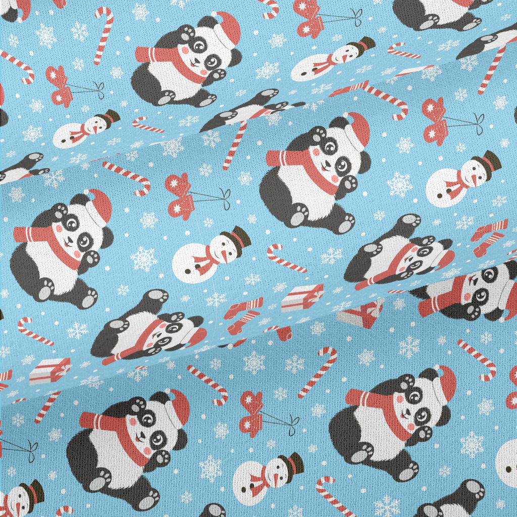 可愛貓熊過聖誕雪紡布(幅寬150公分)