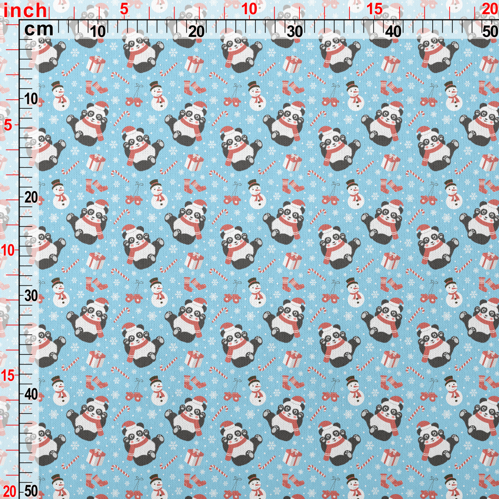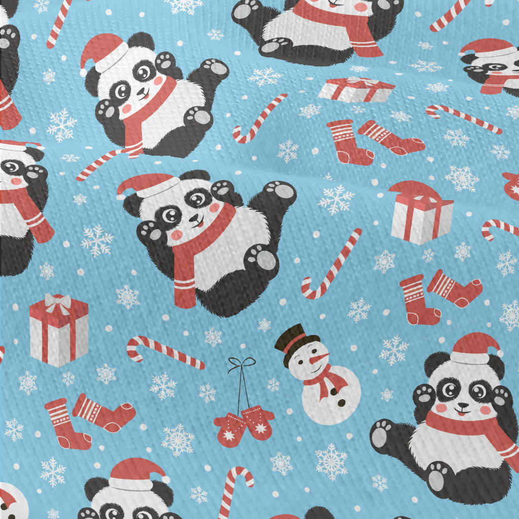可愛貓熊過聖誕仿棉布(幅寬150公分)