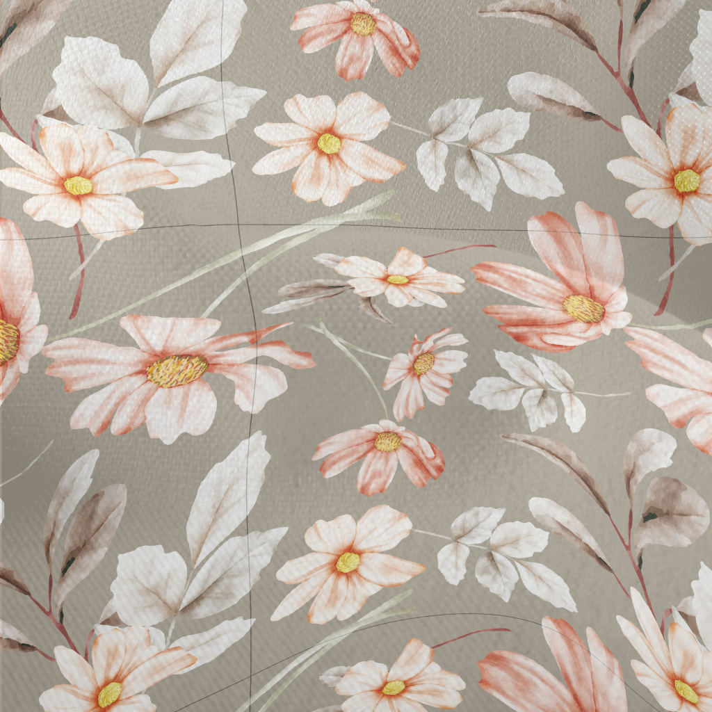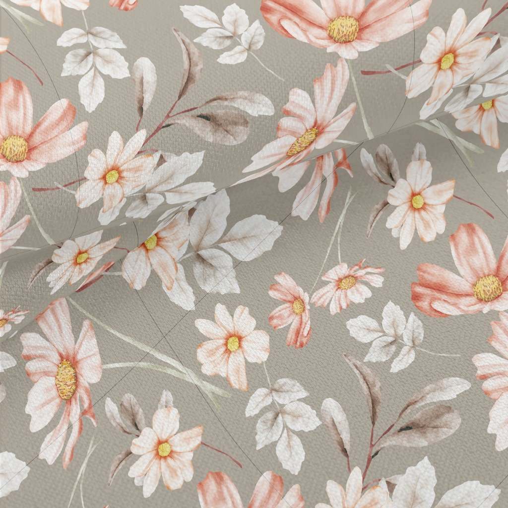 粉色花朵水彩畫竹節麻(幅寬150公分)