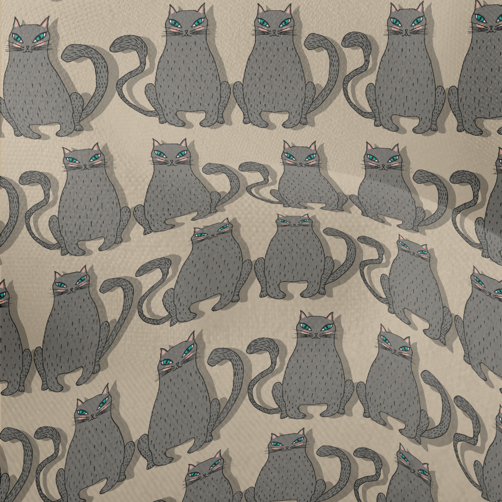手繪藍眼貓咪竹節麻(幅寬150公分)