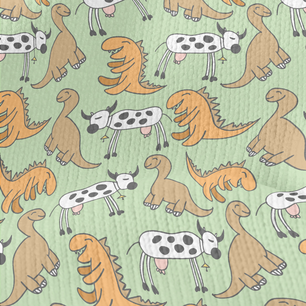 恐龍與乳牛仿毛衣布(幅寬150公分)