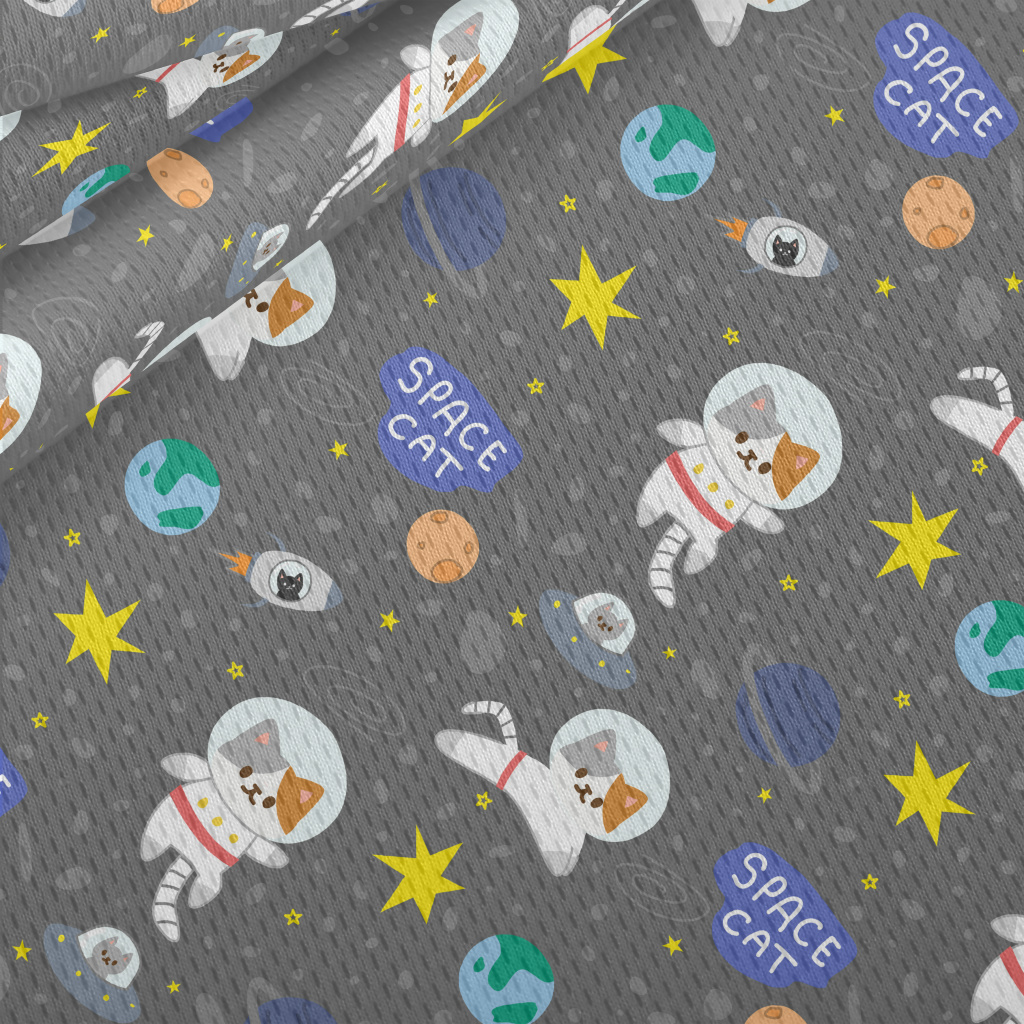手繪貓咪太空人鳥眼布(幅寬160公分)