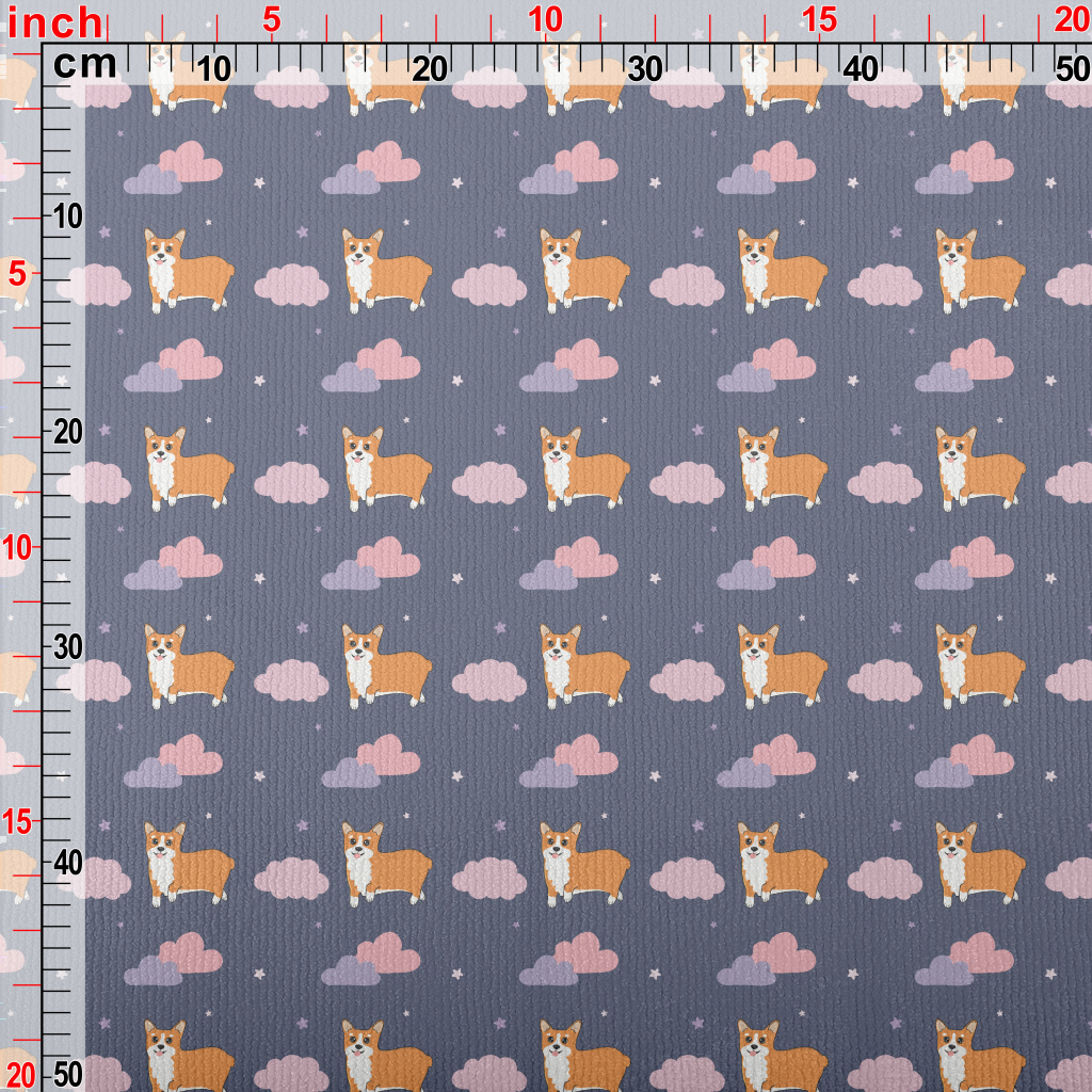 手繪柯基在天空毛巾布(幅寬160公分)