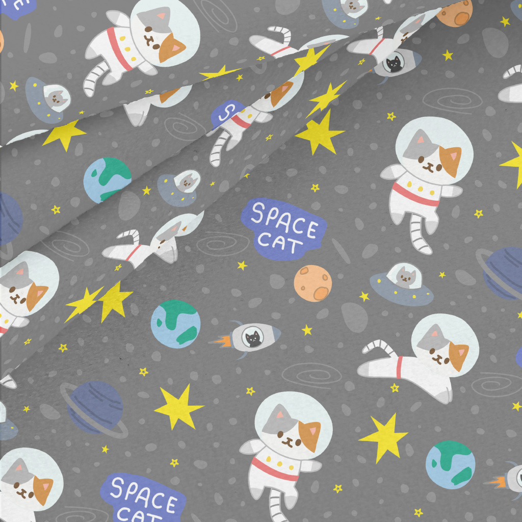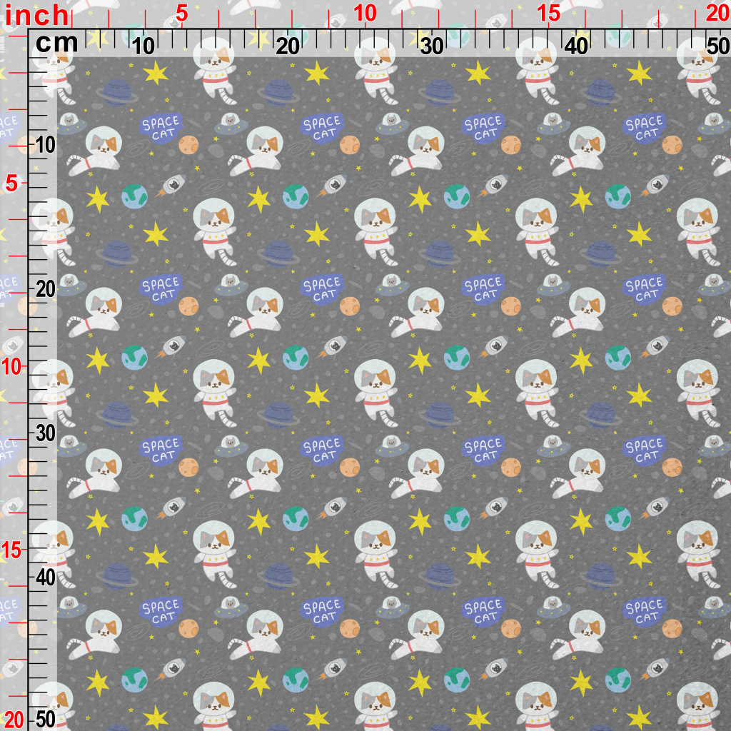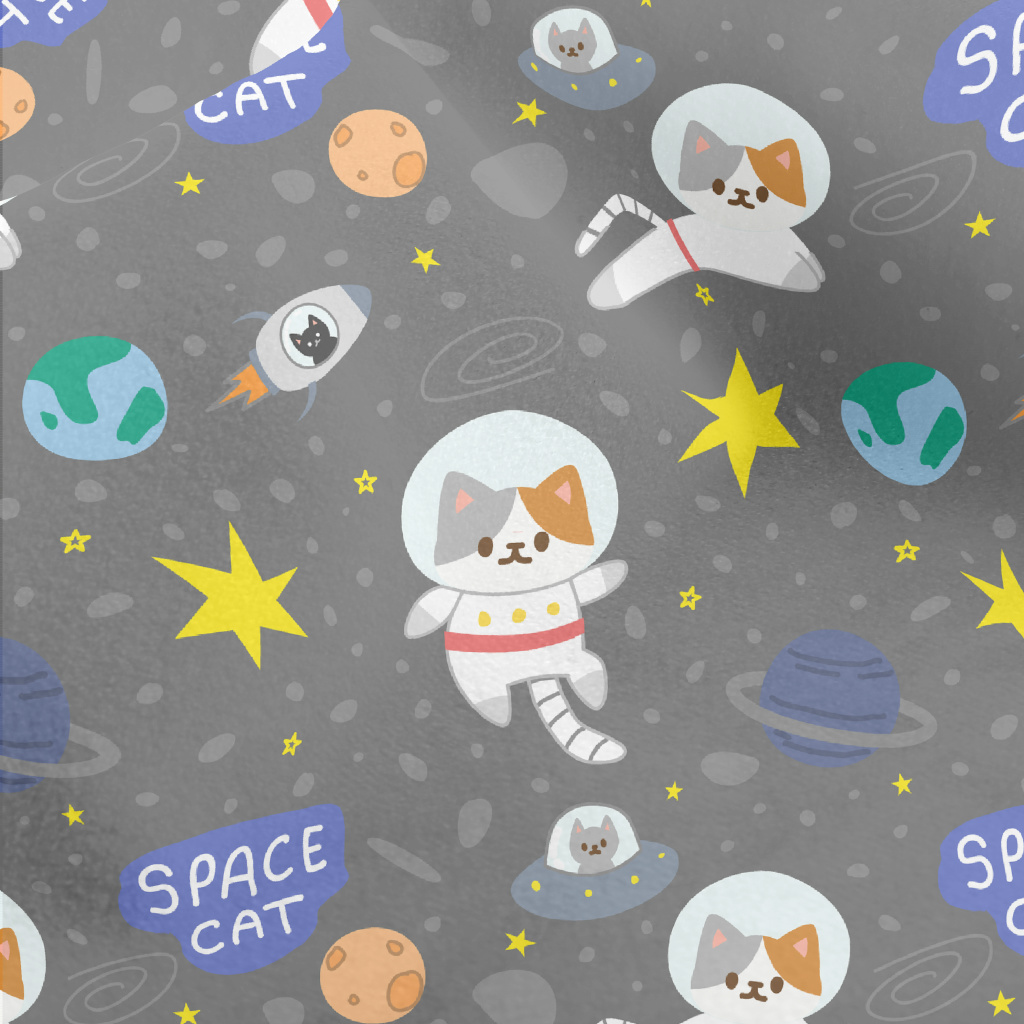 手繪貓咪太空人水晶絨(幅寬160公分)