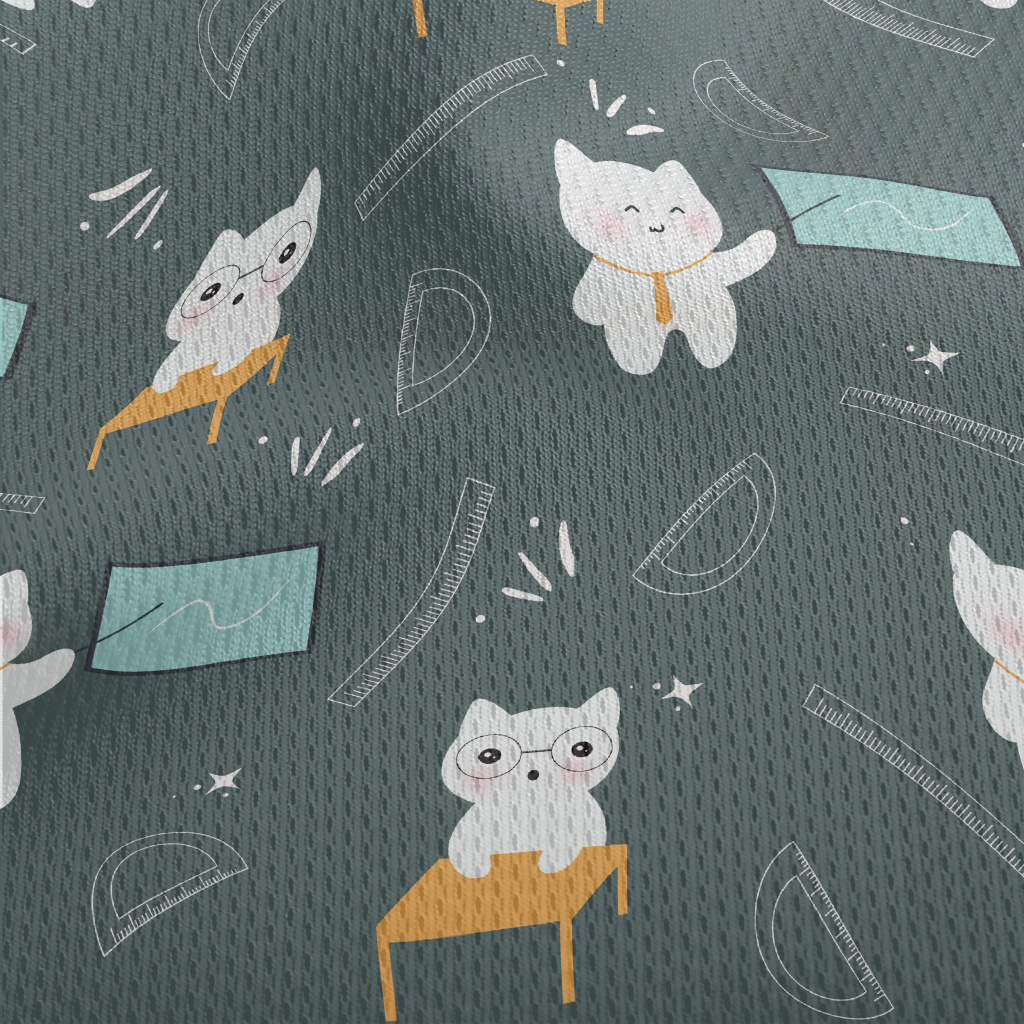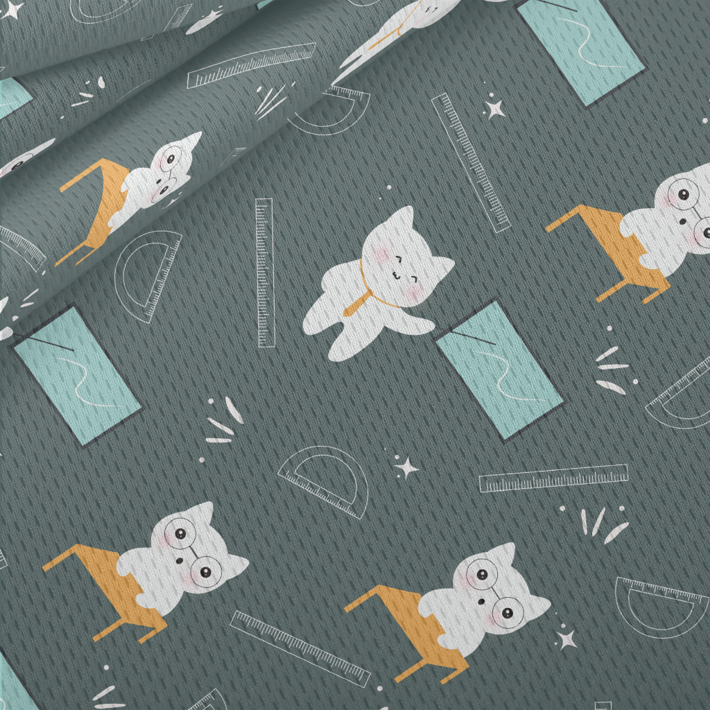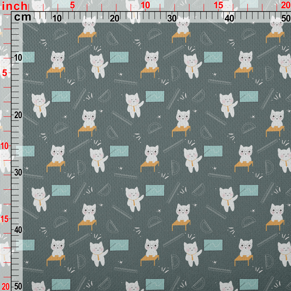 可愛貓咪上學鳥眼布(幅寬160公分)