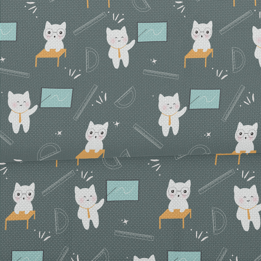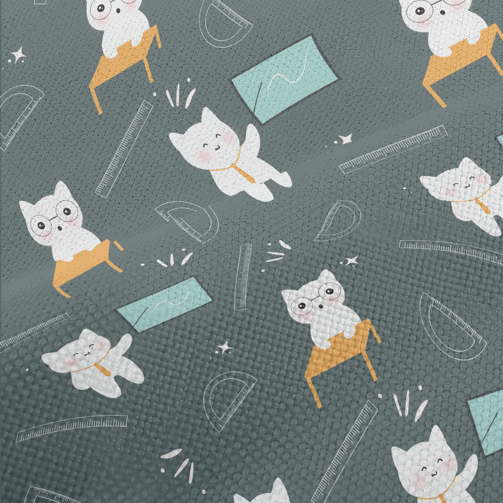 可愛貓咪上學麻布(幅寬150公分)