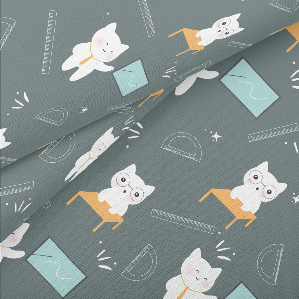 可愛貓咪上學羅馬布(幅寬160公分)