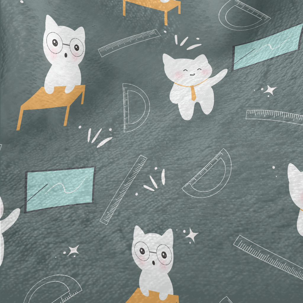 可愛貓咪上學法蘭絨(幅寬150公分)