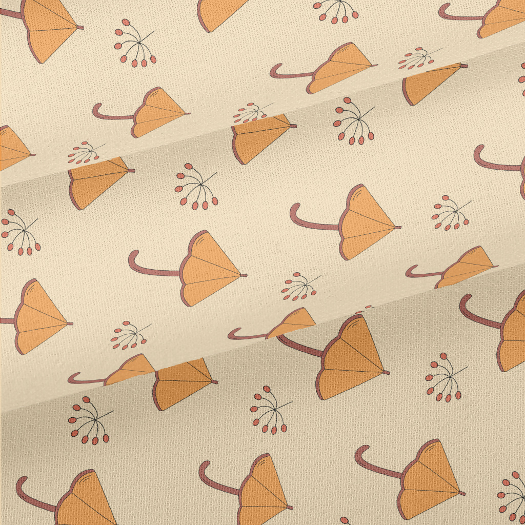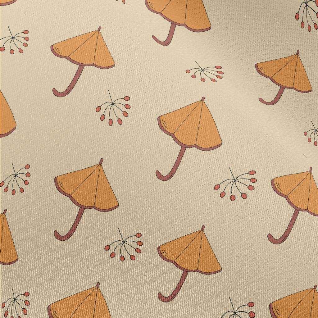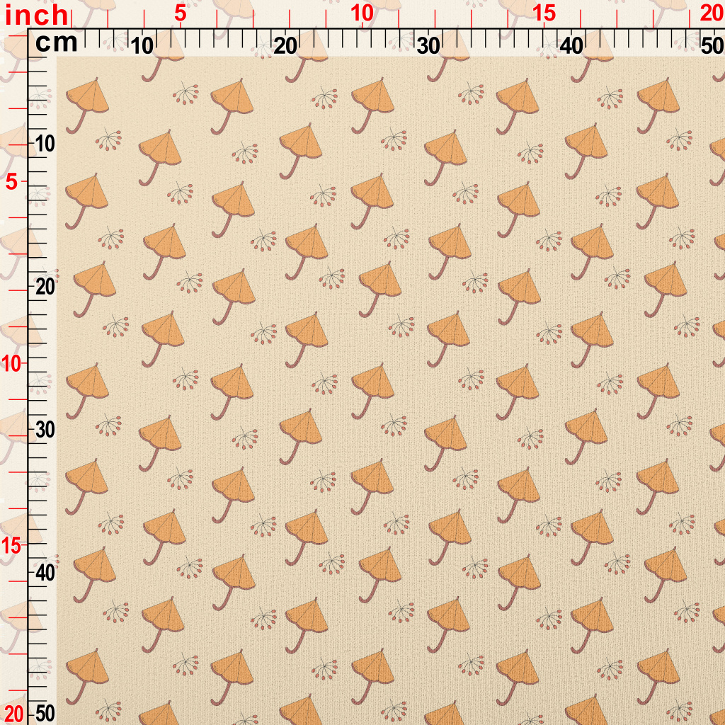 卡通橘色雨傘雪紡布(幅寬150公分)