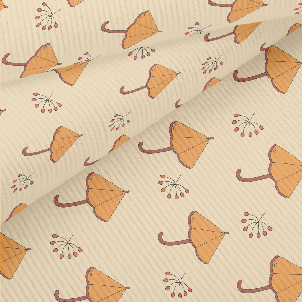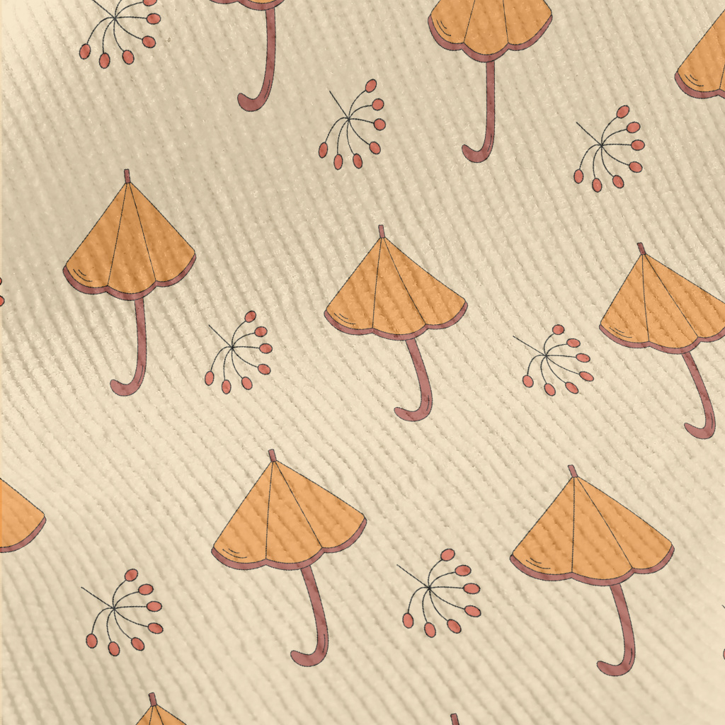 卡通橘色雨傘燈芯絨(幅寬150公分)