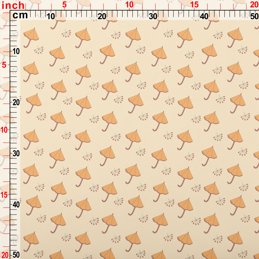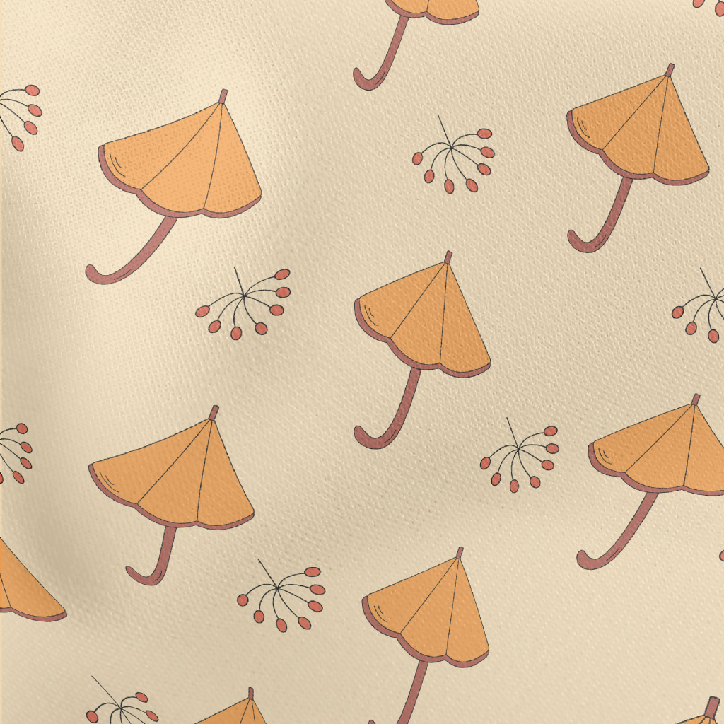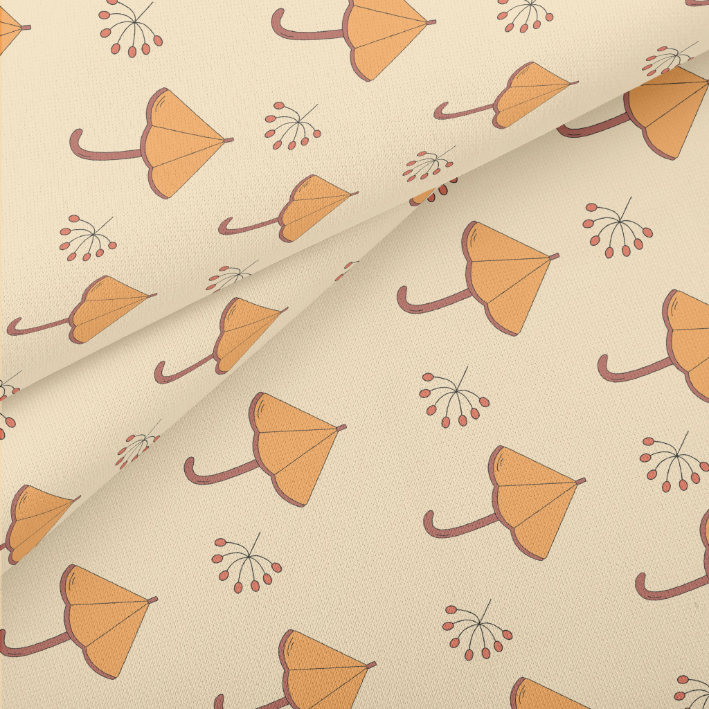卡通橘色雨傘羅馬布(幅寬160公分)