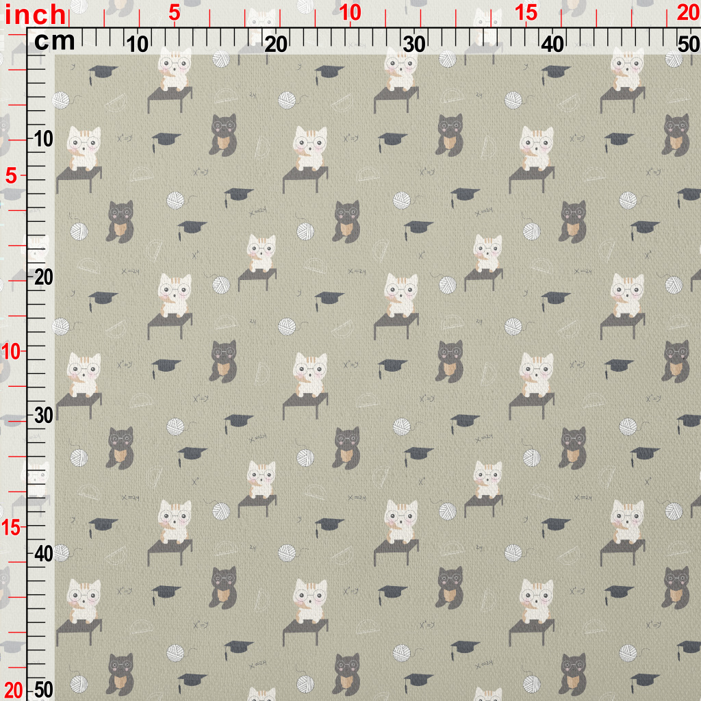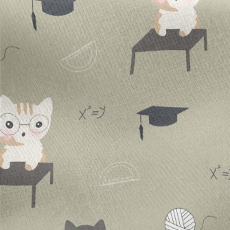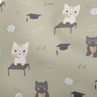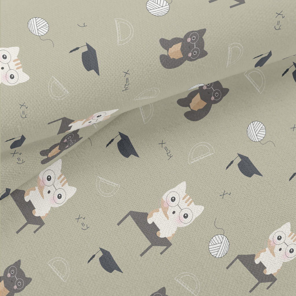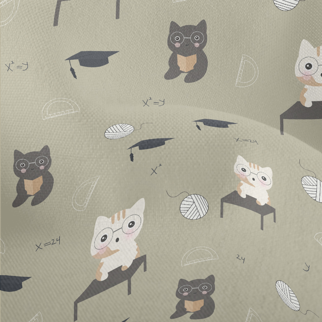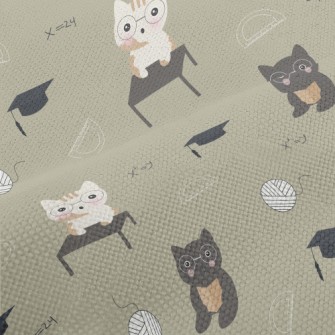 貓咪上數學課竹節麻(幅寬150公分)