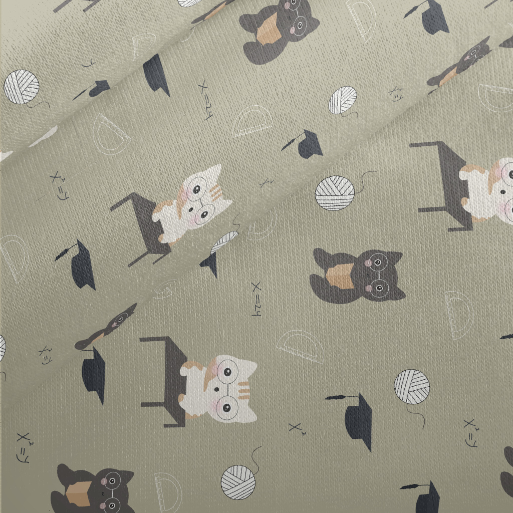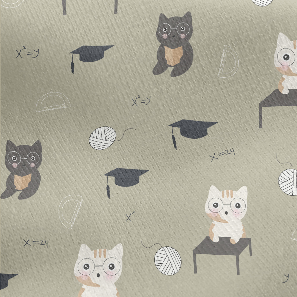 貓咪上數學課刷毛布(幅寬150公分)