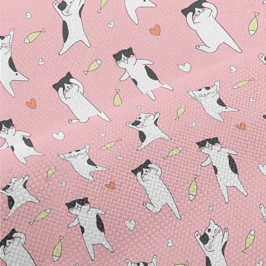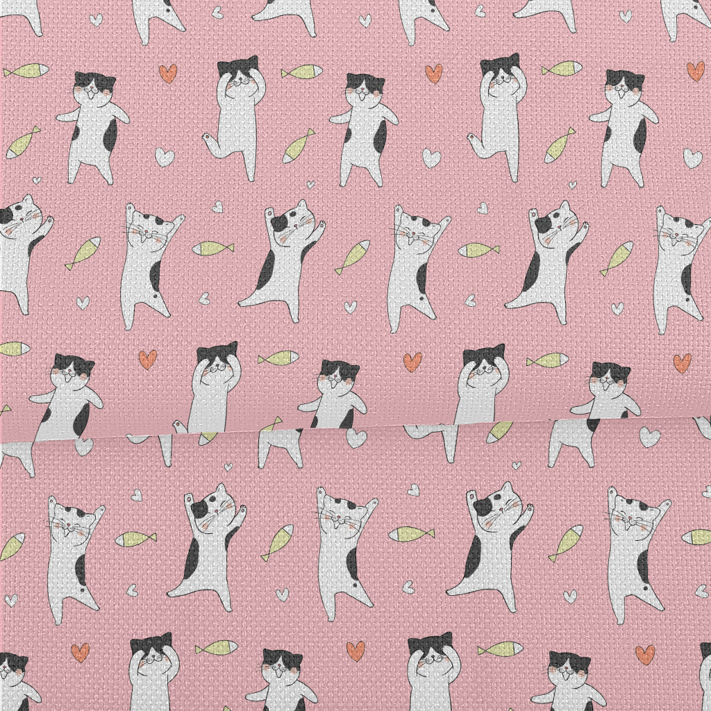 快樂貓咪跳舞麻布(幅寬150公分)