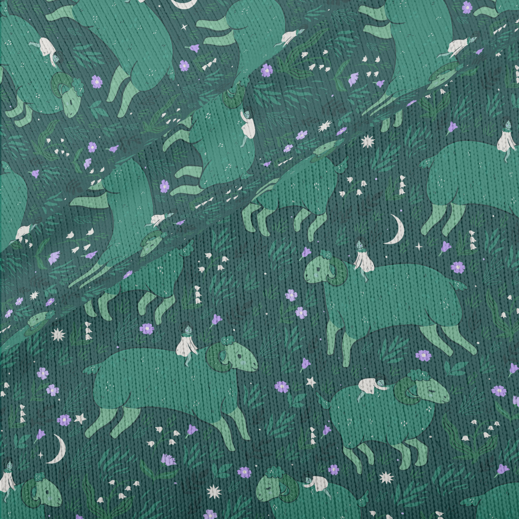 少女與巨大山羊仿毛衣布(幅寬150公分)