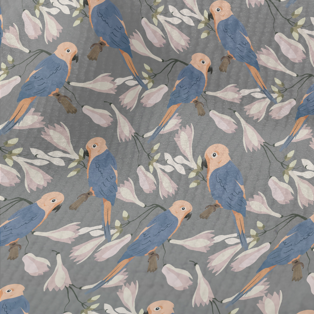 鸚鵡與玉蘭花毛巾布(幅寬160公分)
