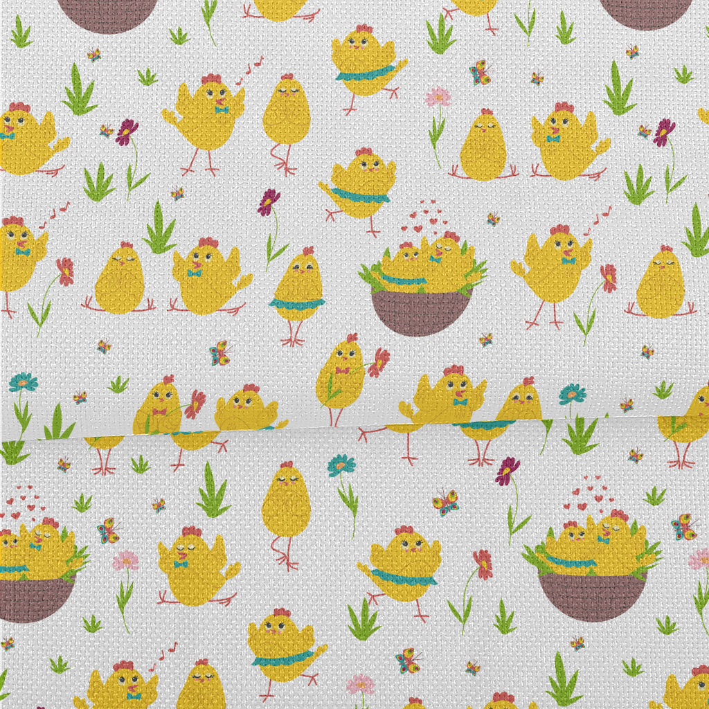 甜蜜小雞夫婦麻布(幅寬150公分)