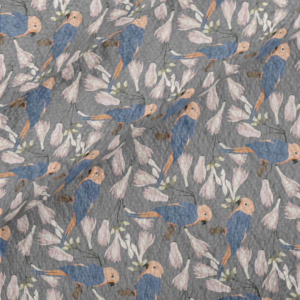 鸚鵡與玉蘭花法蘭絨(幅寬150公分)