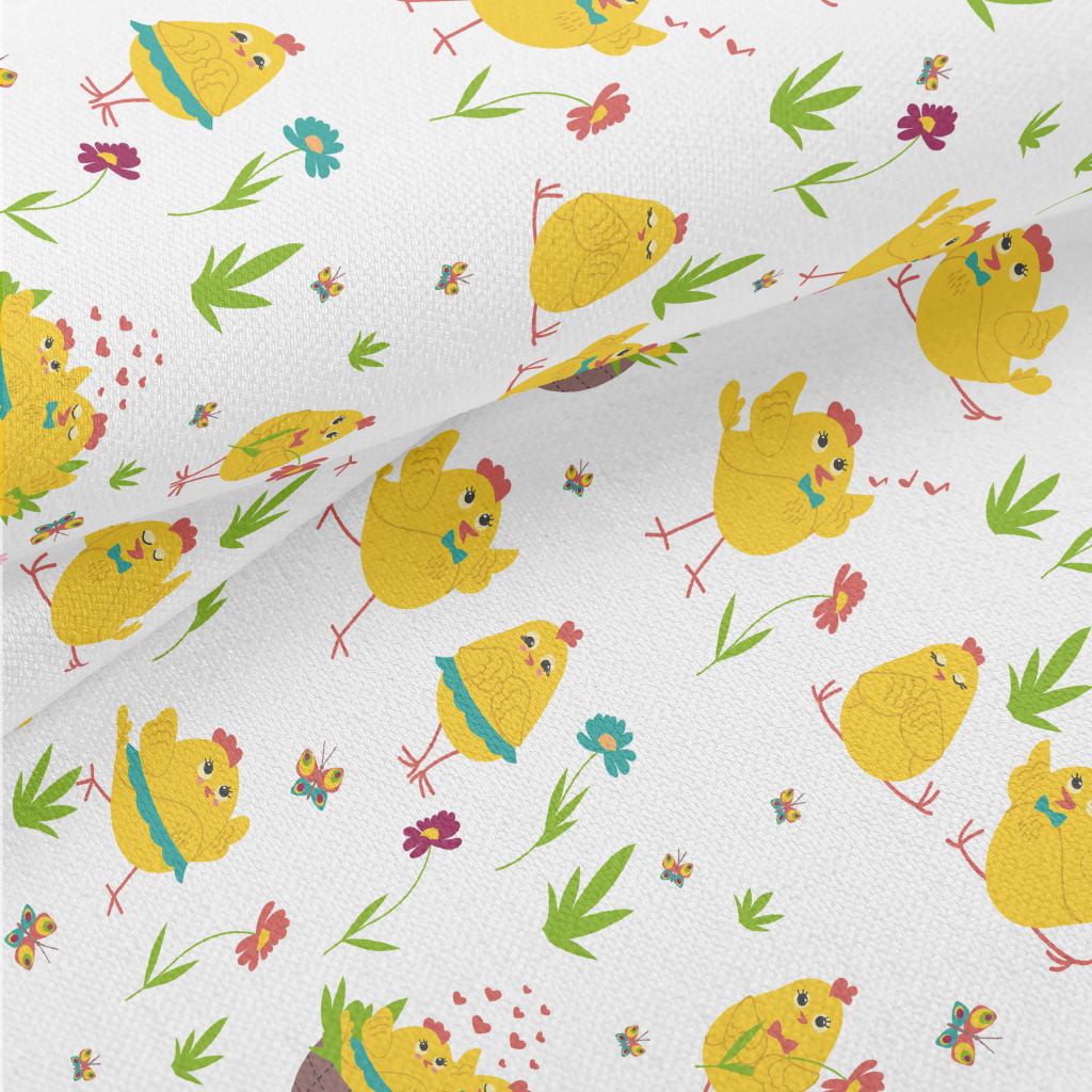 甜蜜小雞夫婦竹節麻(幅寬150公分)
