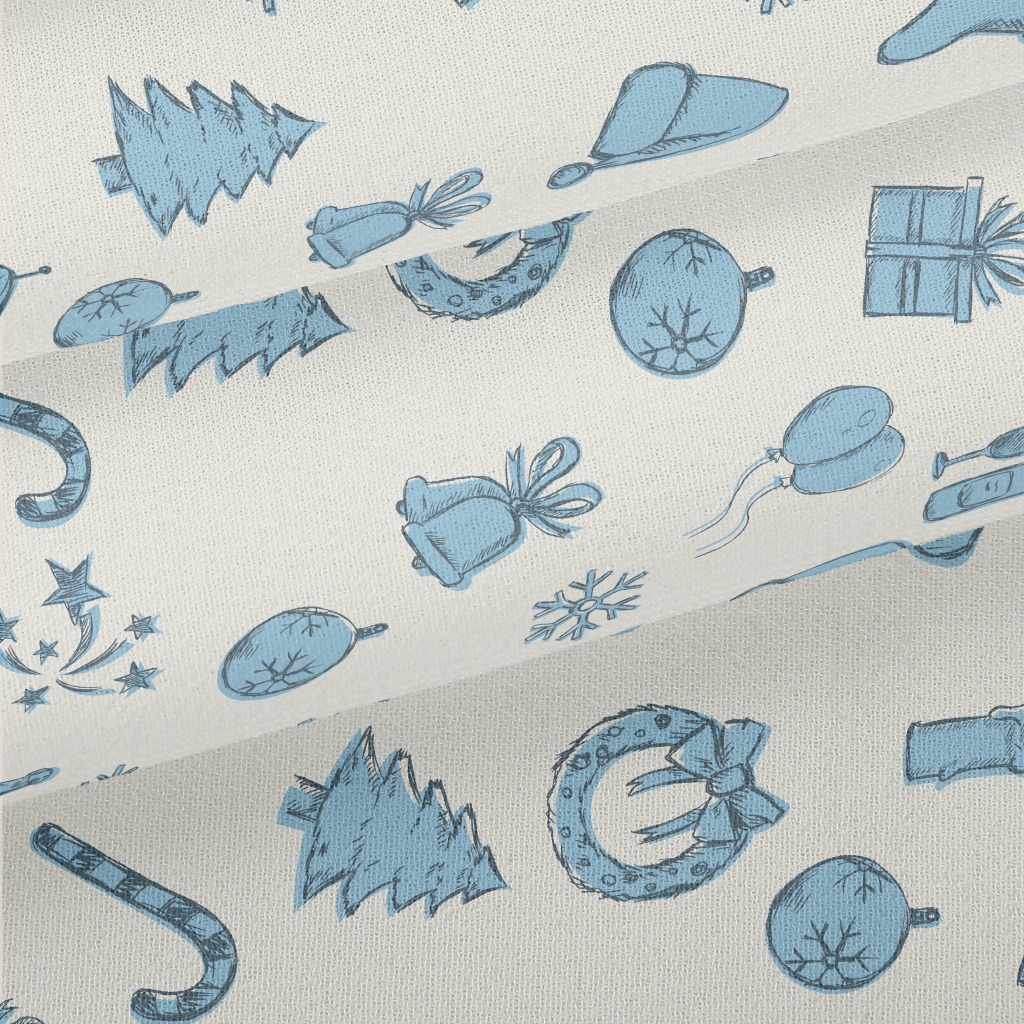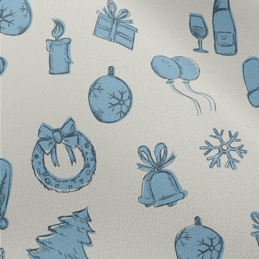 手繪藍色聖誕用品雪紡布(幅寬150公分)