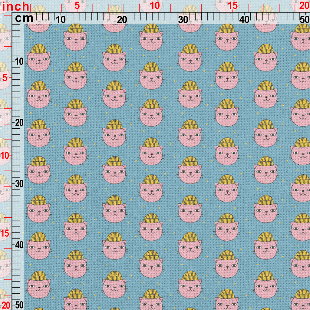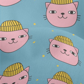 搞笑毛線帽貓咪麻布(幅寬150公分)