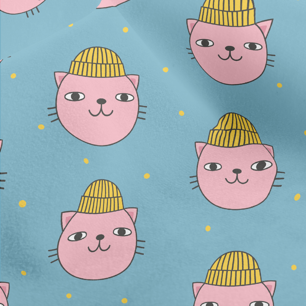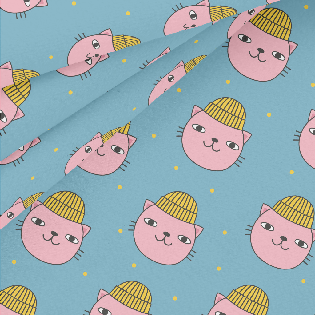 搞笑毛線帽貓咪水晶絨(幅寬160公分)