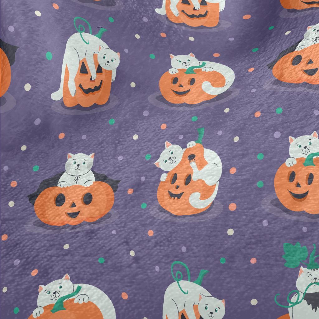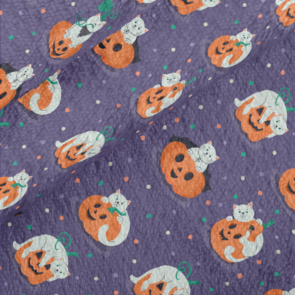 貓咪與南瓜燈法蘭絨(幅寬150公分)