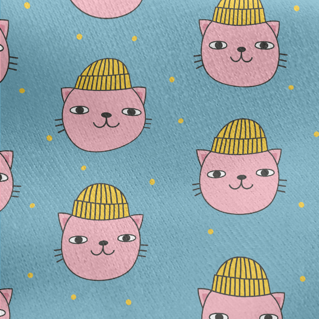 搞笑毛線帽貓咪刷毛布(幅寬150公分)