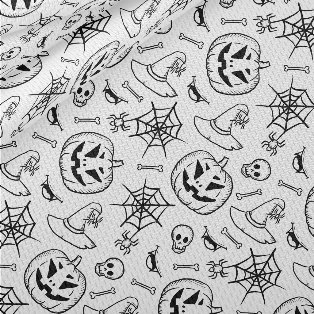 黑白萬聖節塗鴉鳥眼布(幅寬160公分)
