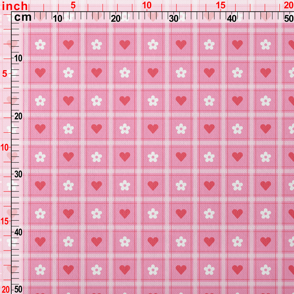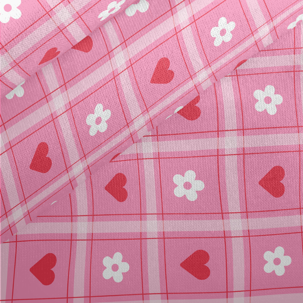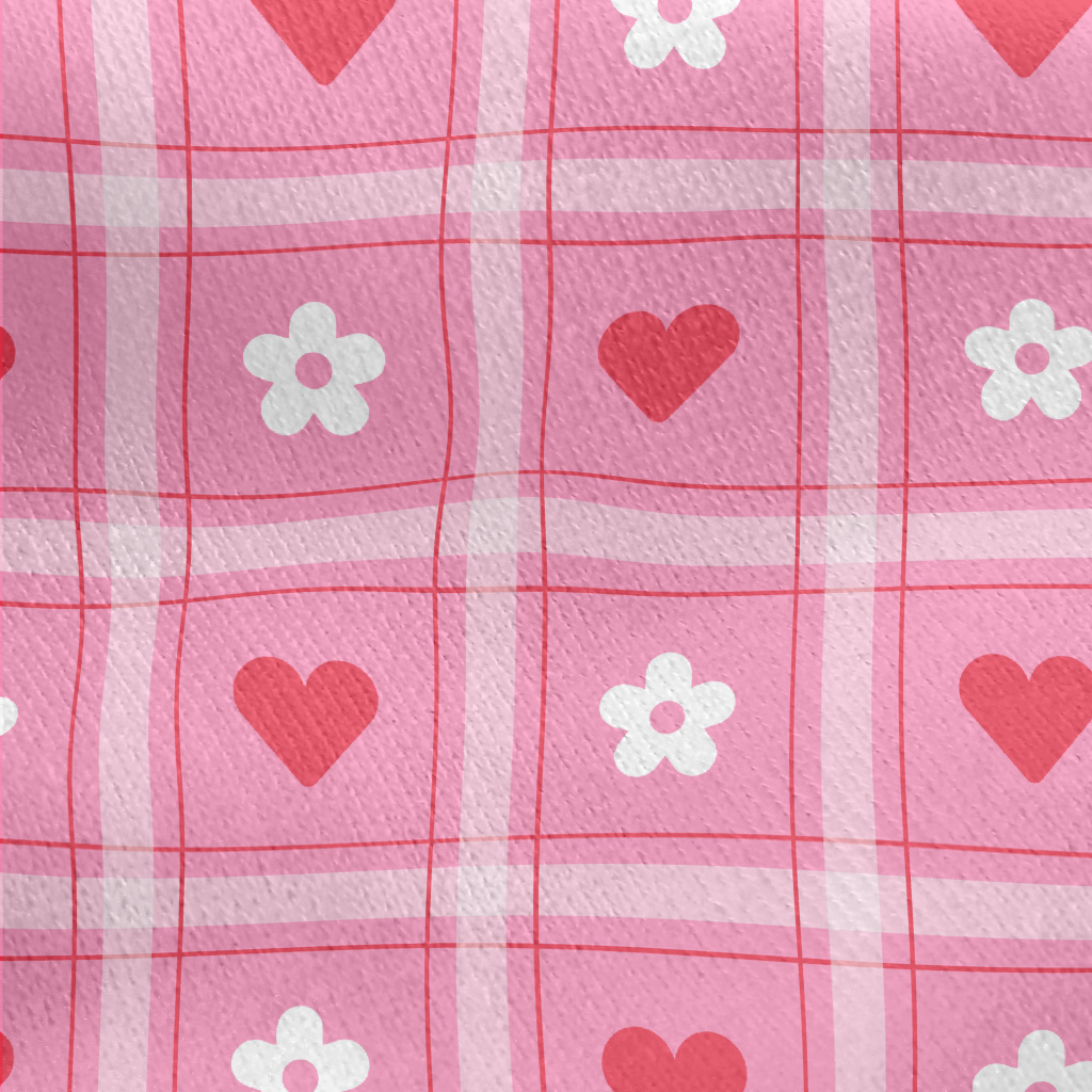 格子愛心小白花刷毛布(幅寬150公分)