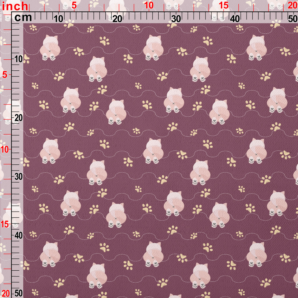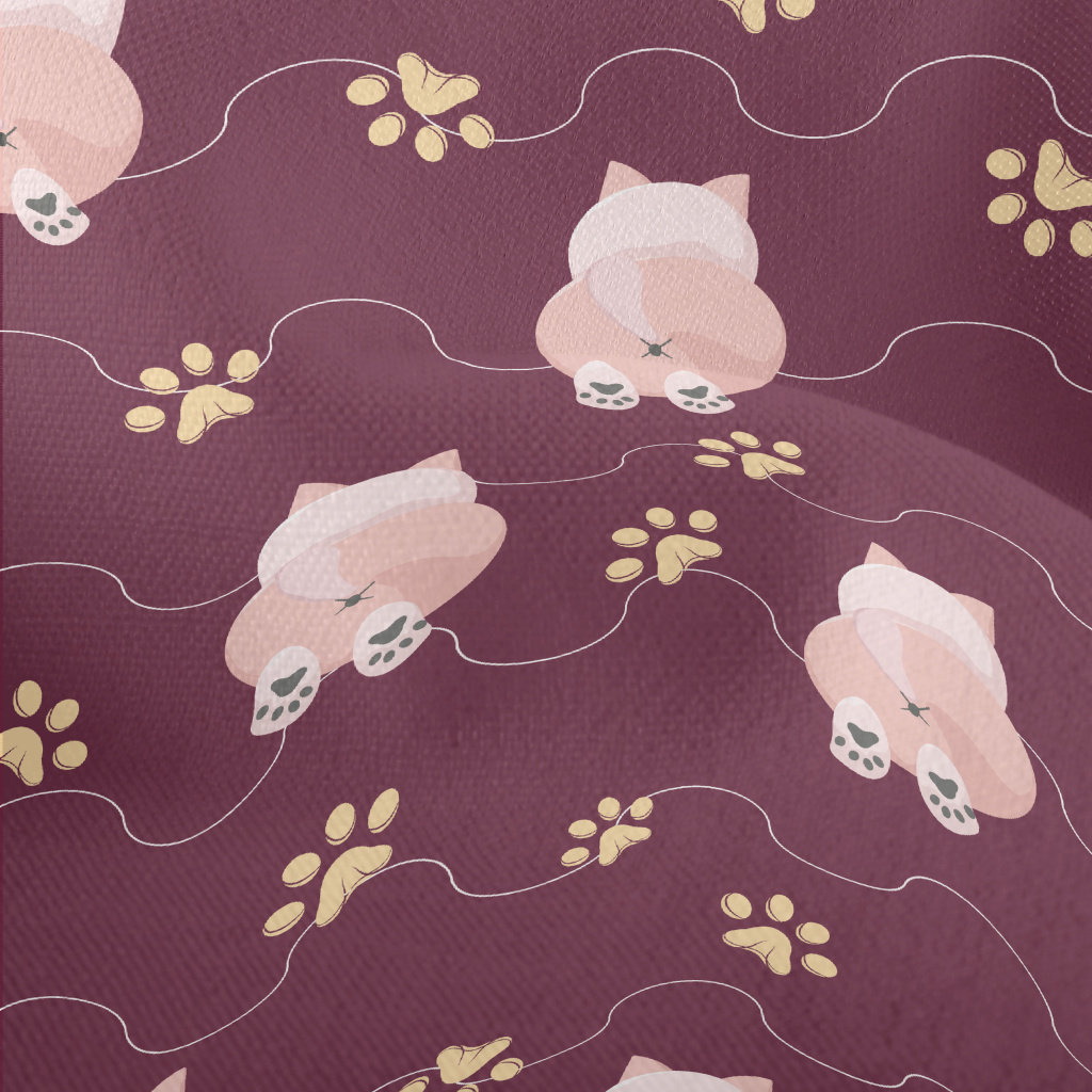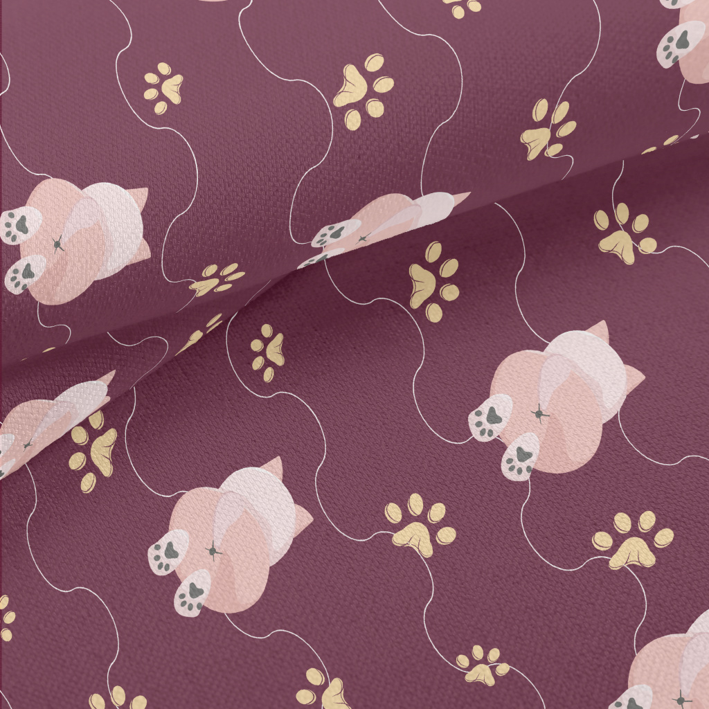 粉色貓咪與掌印竹節麻(幅寬150公分)