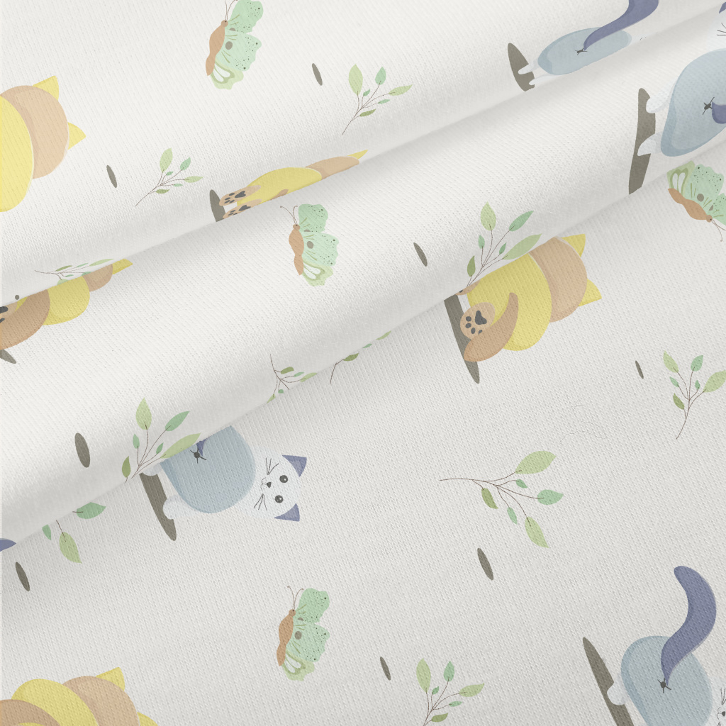 貓咪與蝴蝶仿棉布(幅寬150公分)