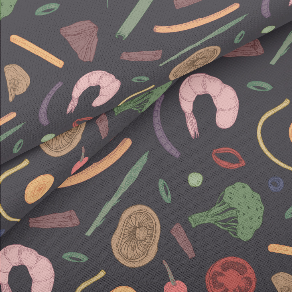 彩色手繪食材羅馬布(幅寬160公分)