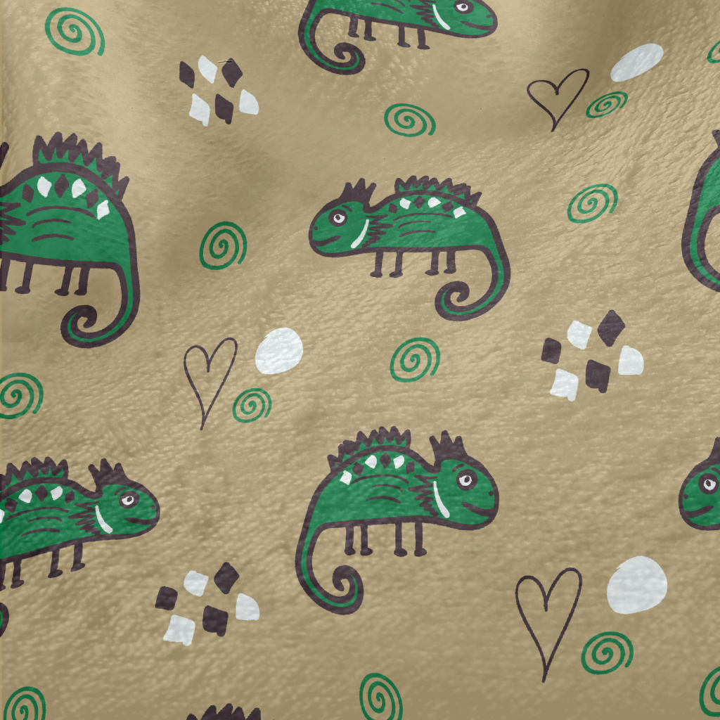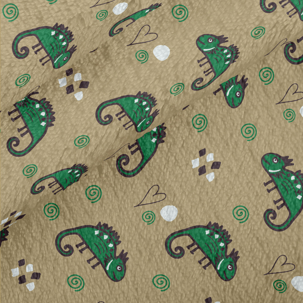 綠色手繪蜥蜴法蘭絨(幅寬150公分)