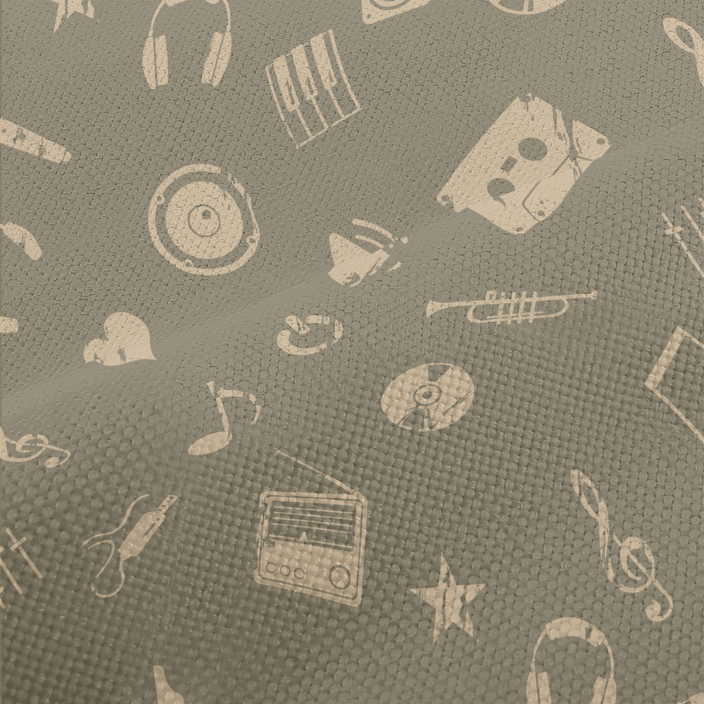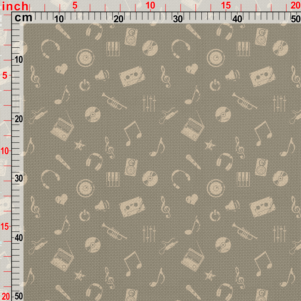 美式音樂圖案麻布(幅寬150公分)