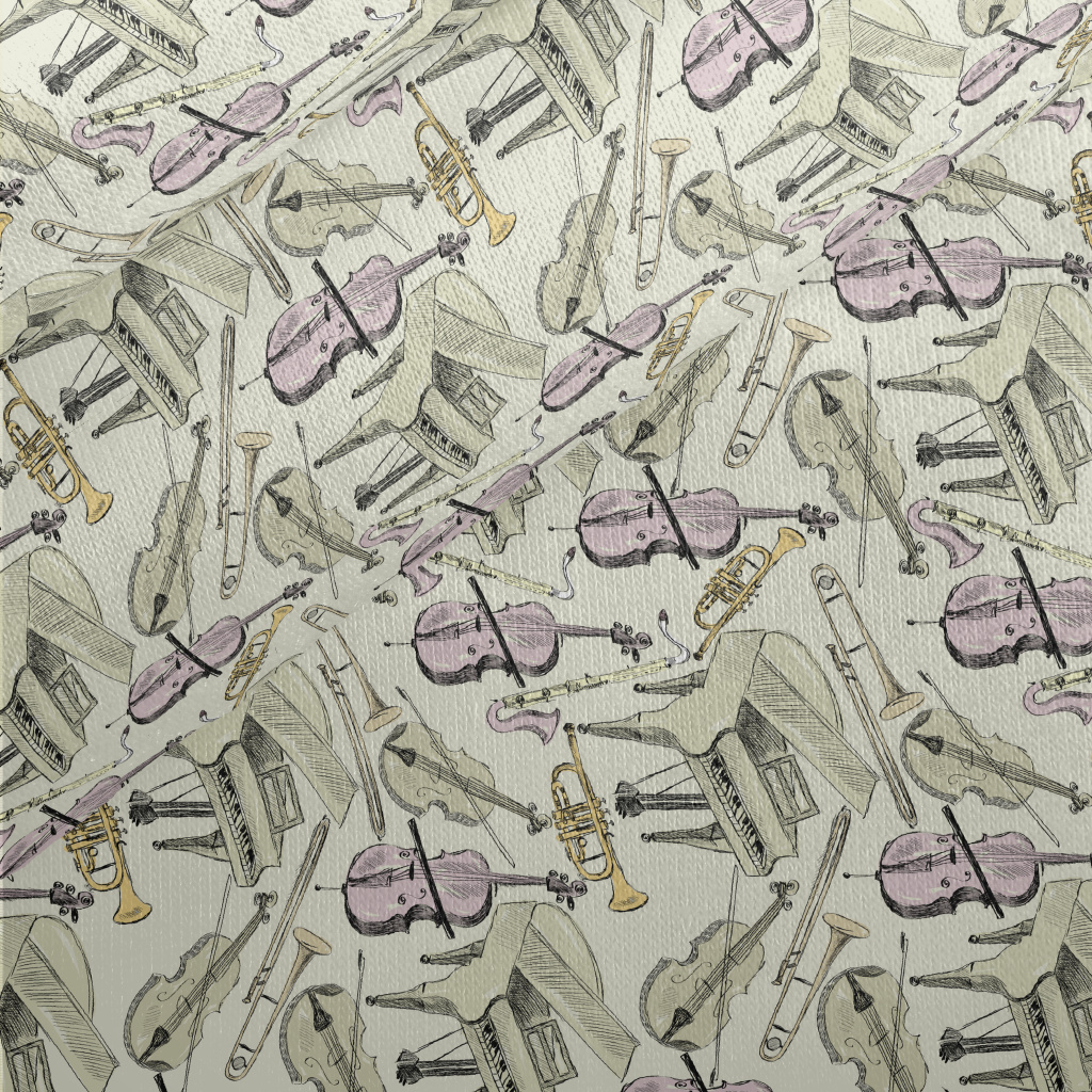 手繪管弦樂插畫刷毛布(幅寬150公分)