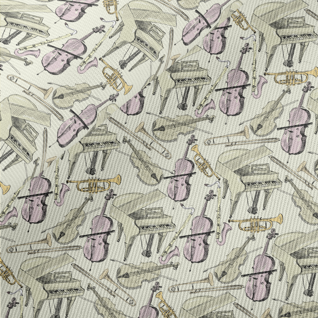 手繪管弦樂插畫厚棉布(幅寬150公分)