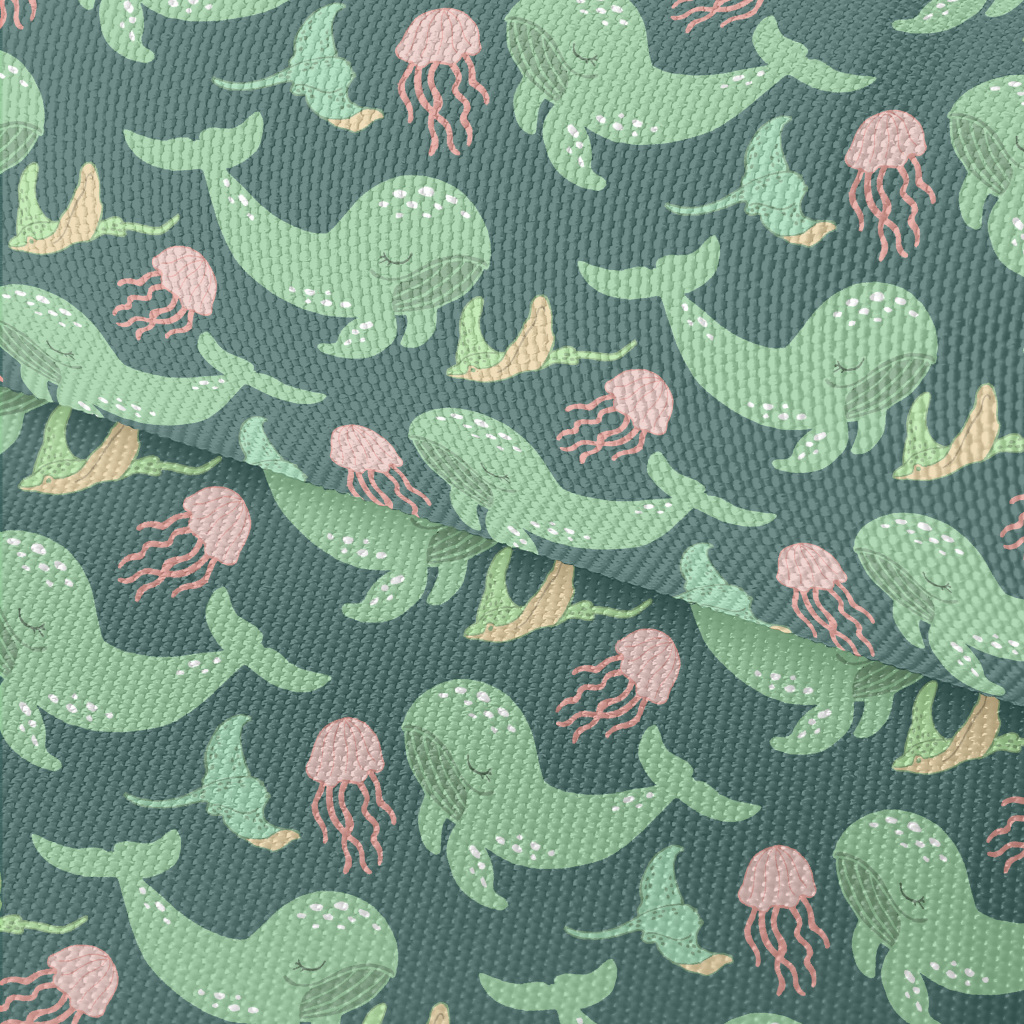綠色鯨魚粉色水母牛津布(幅寬150公分)