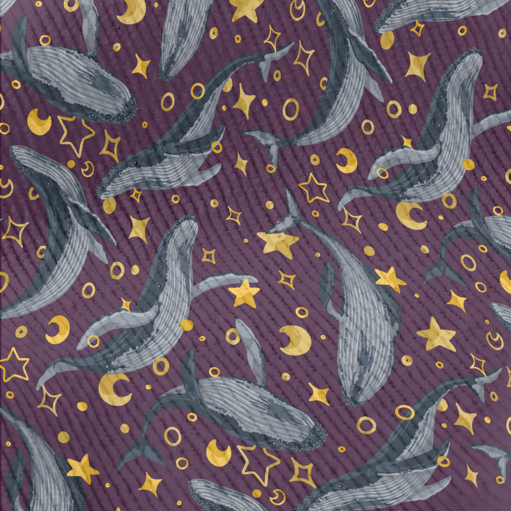 手繪鯨魚與星星燈芯絨(幅寬150公分)