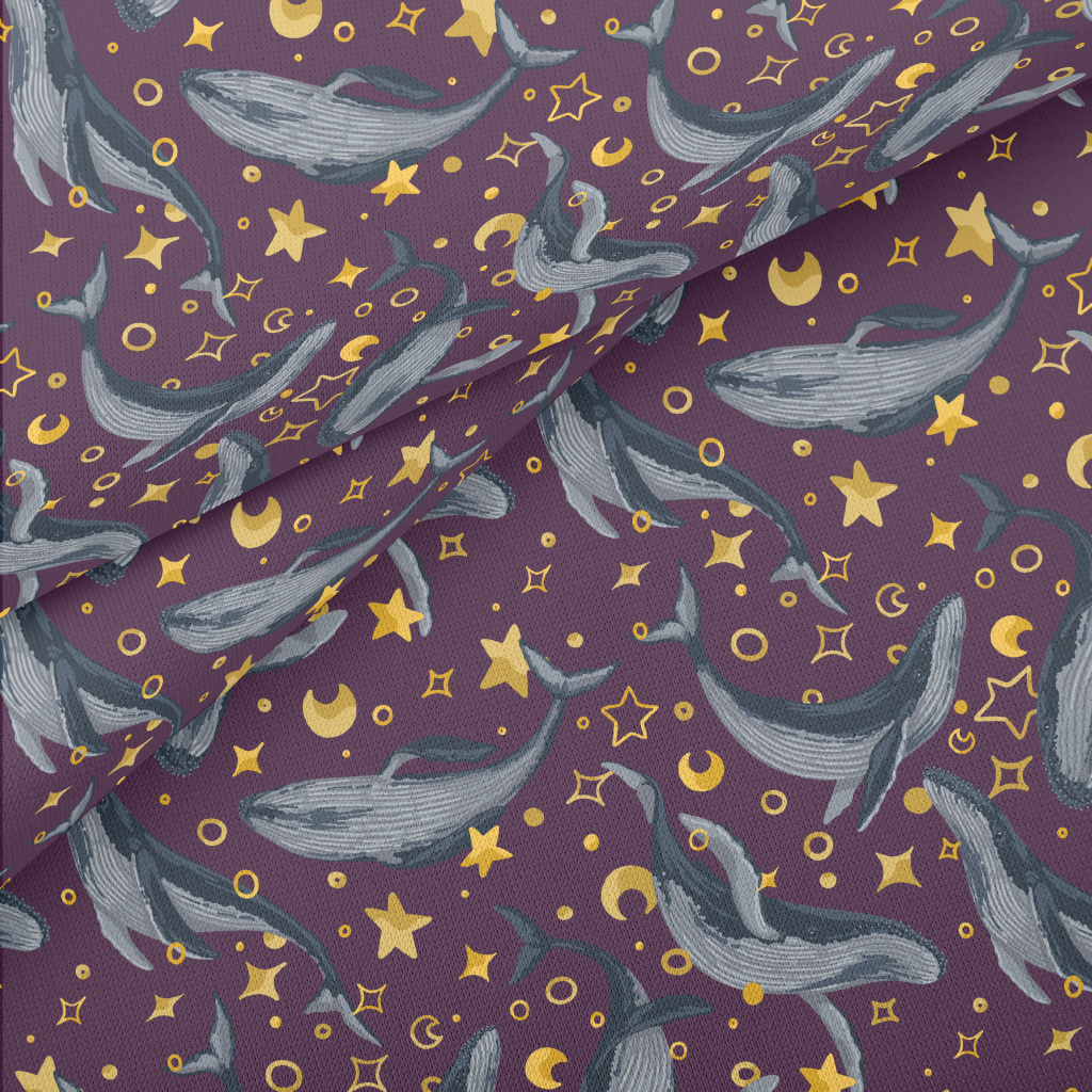 手繪鯨魚與星星羅馬布(幅寬160公分)