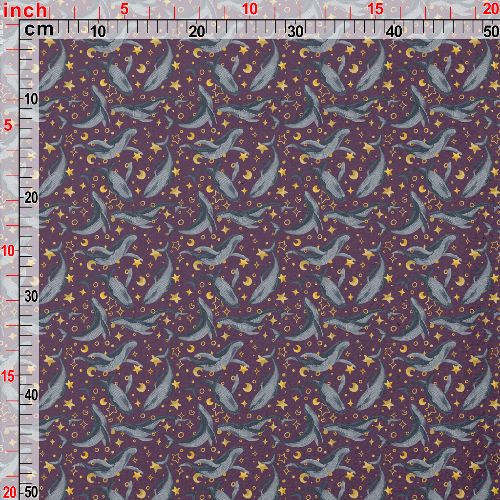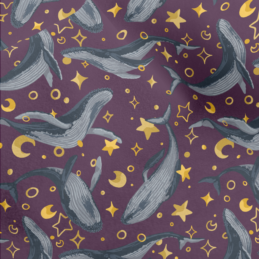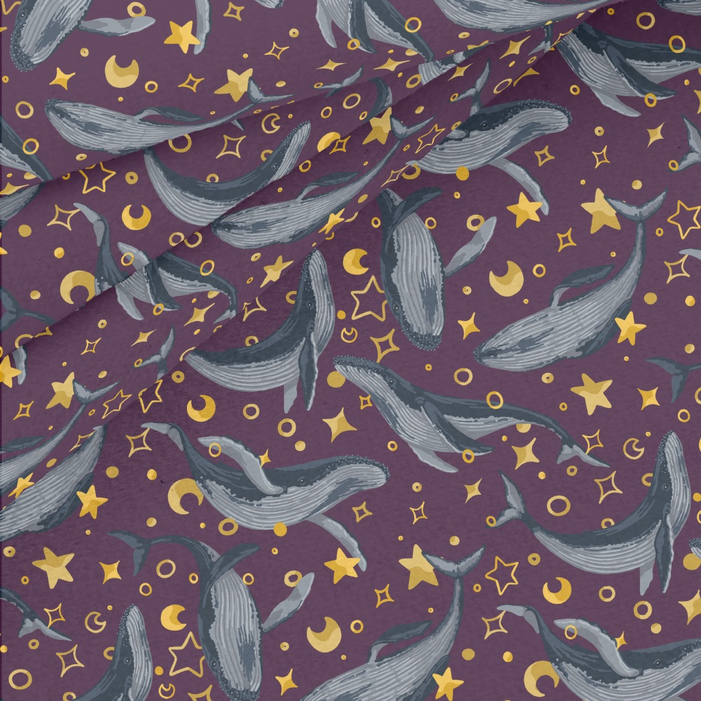手繪鯨魚與星星水晶絨(幅寬160公分)