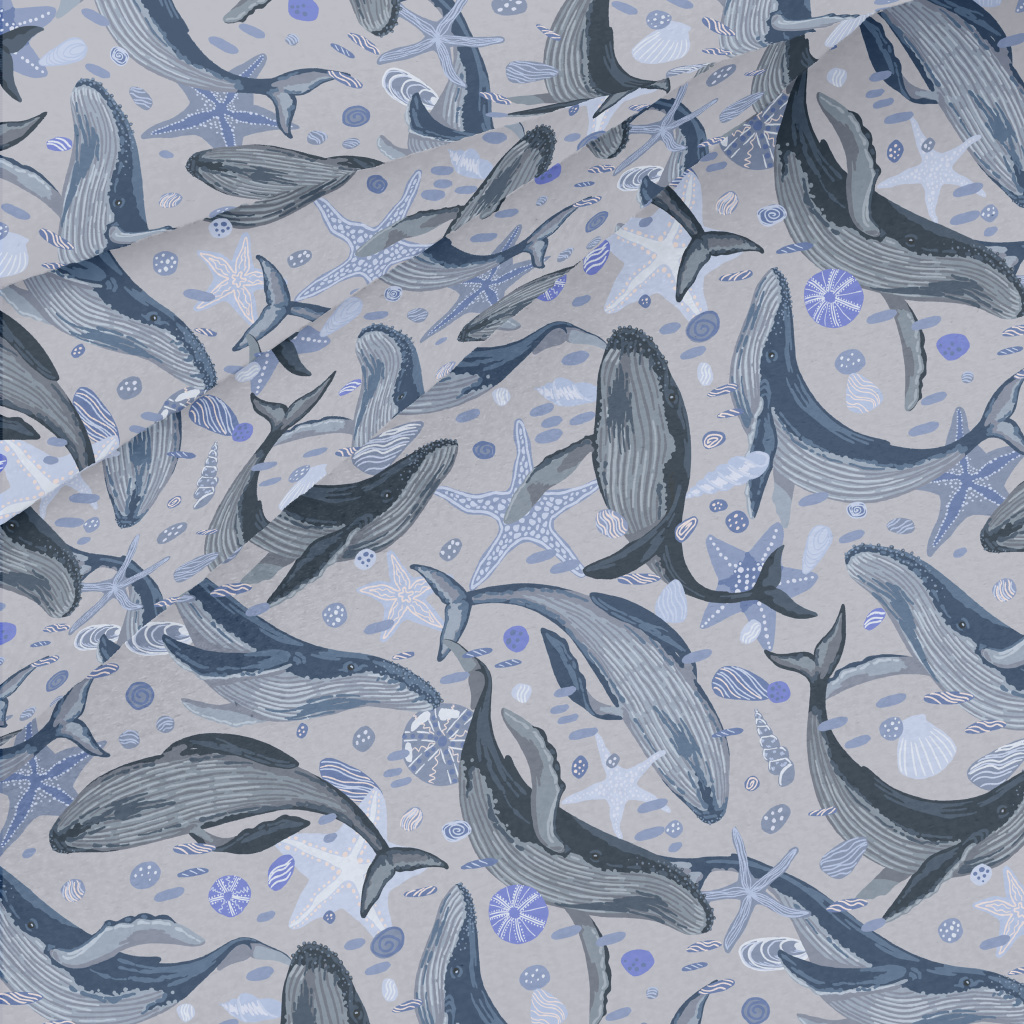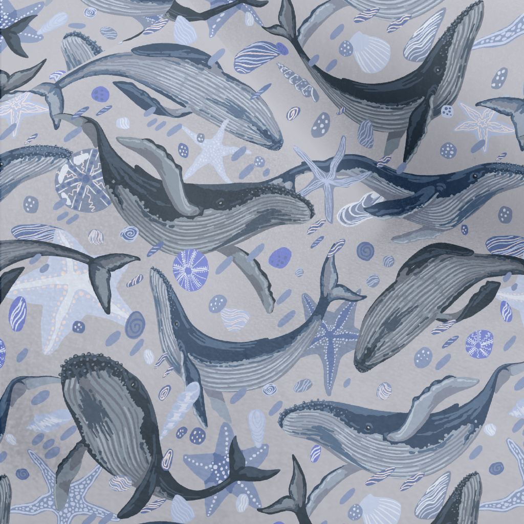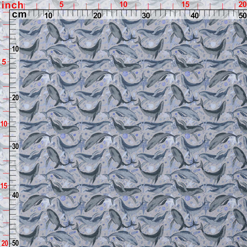 優雅手繪鯨魚水晶絨(幅寬160公分)