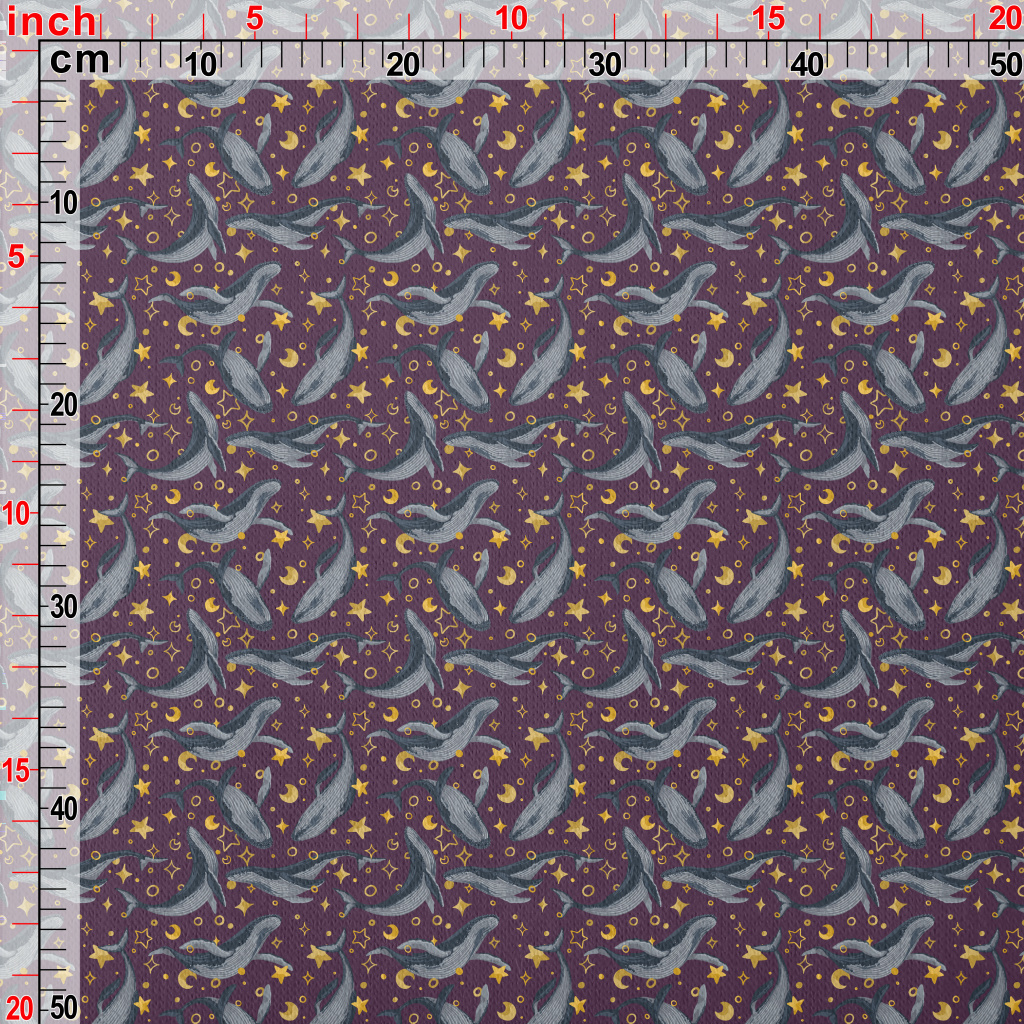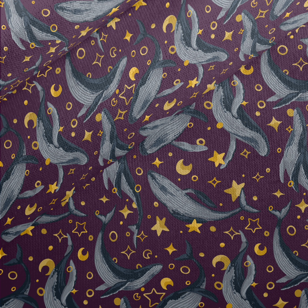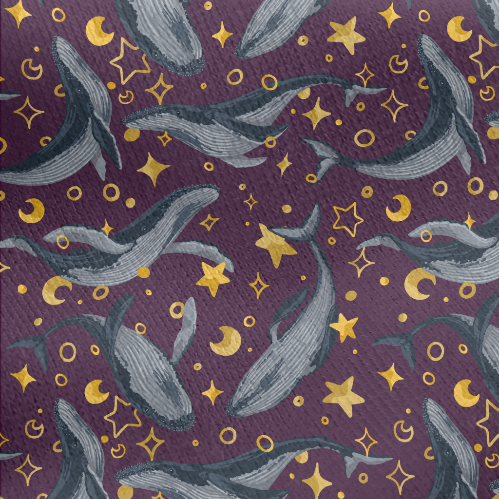 手繪鯨魚與星星刷毛布(幅寬150公分)